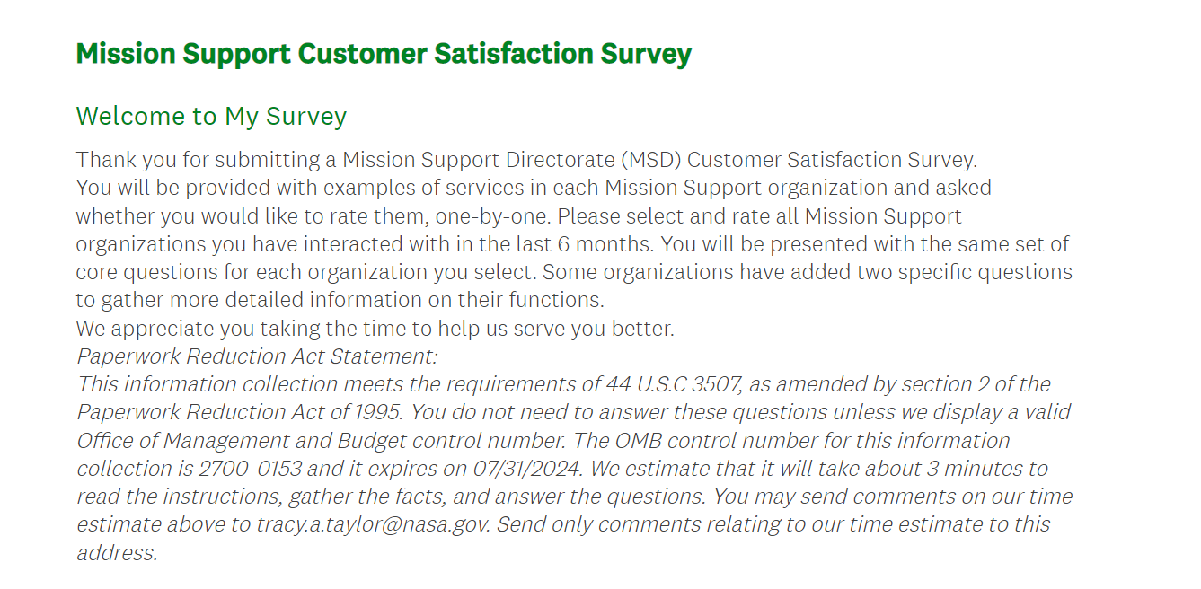 Mission Support Office Survey