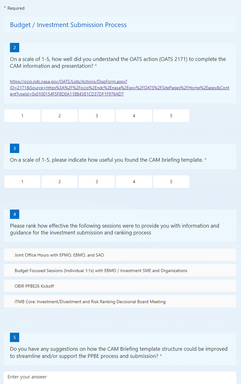 Please provide suggested improvements for the risk management process in the future. How can the OCIO Risk Management Team better support you?