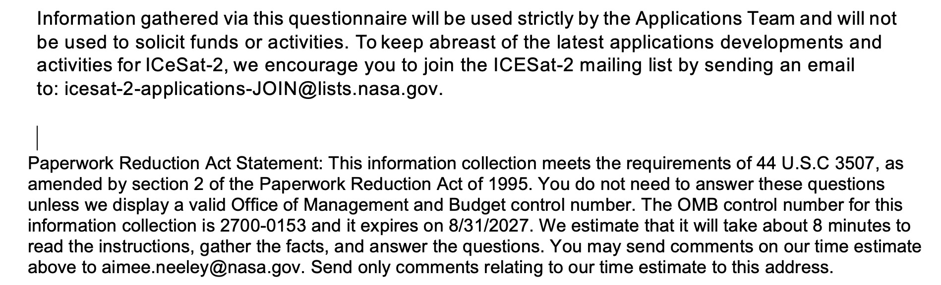 OMB: 2700-0153