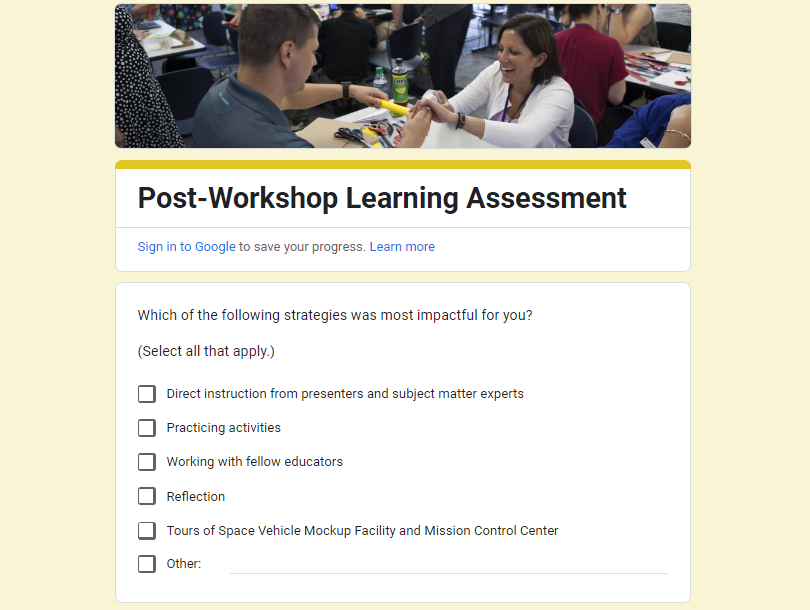 EPD Post-Workshop Learning Assessment (Survey) Screenshots
