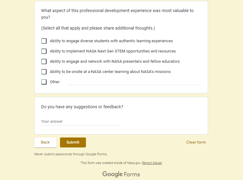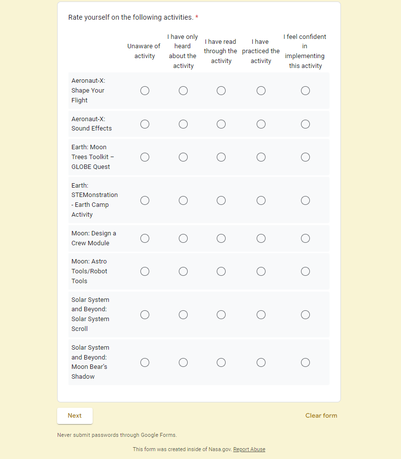 Generic Clearance for the NASA Office of STEM Engagement Performance Measurement and Evaluation (Testing)