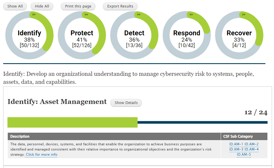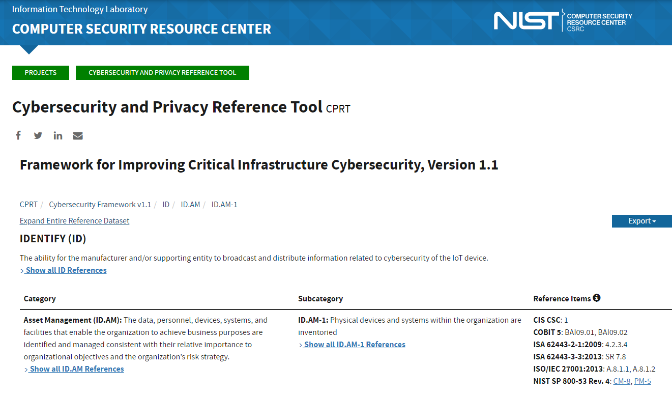 The links from the assessment output directs the users to another tool maintained by ITL where resource mapping is continuously updated to all relevant guidance and standards.