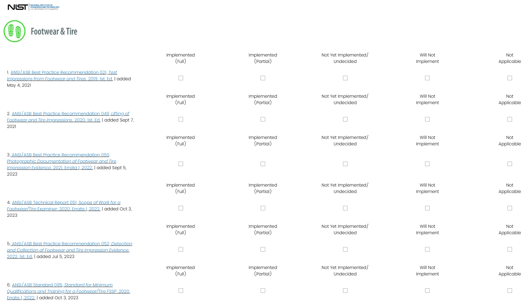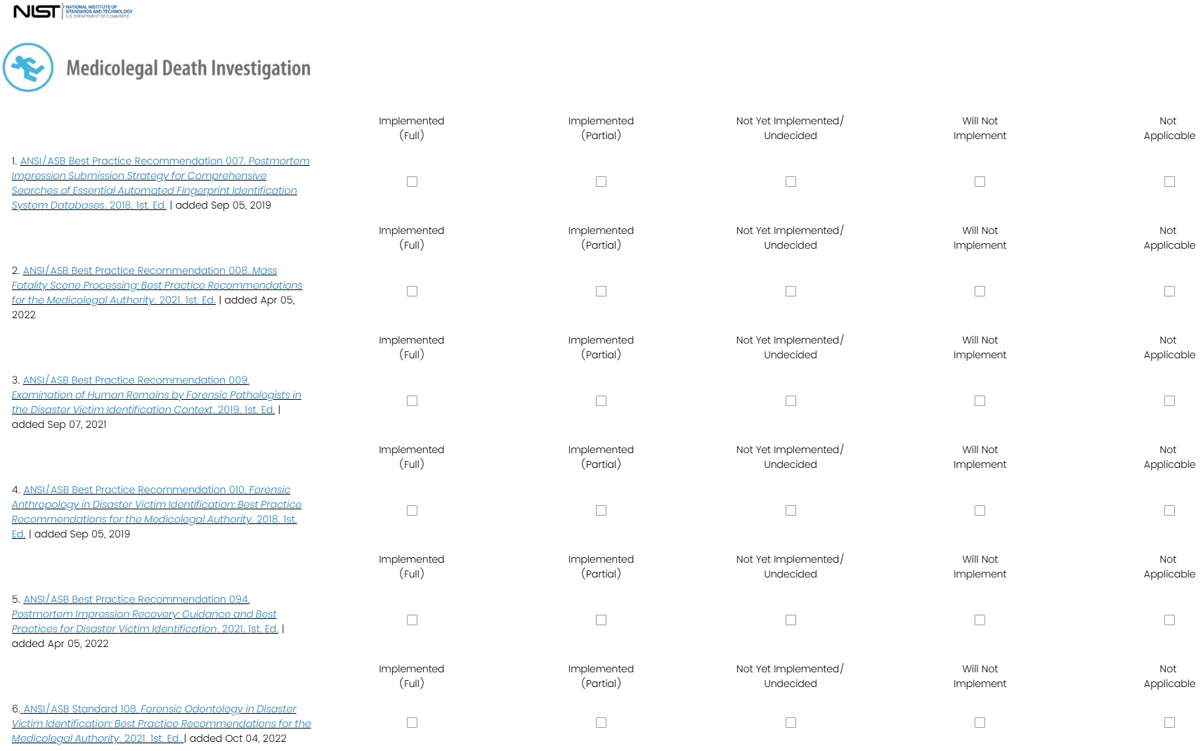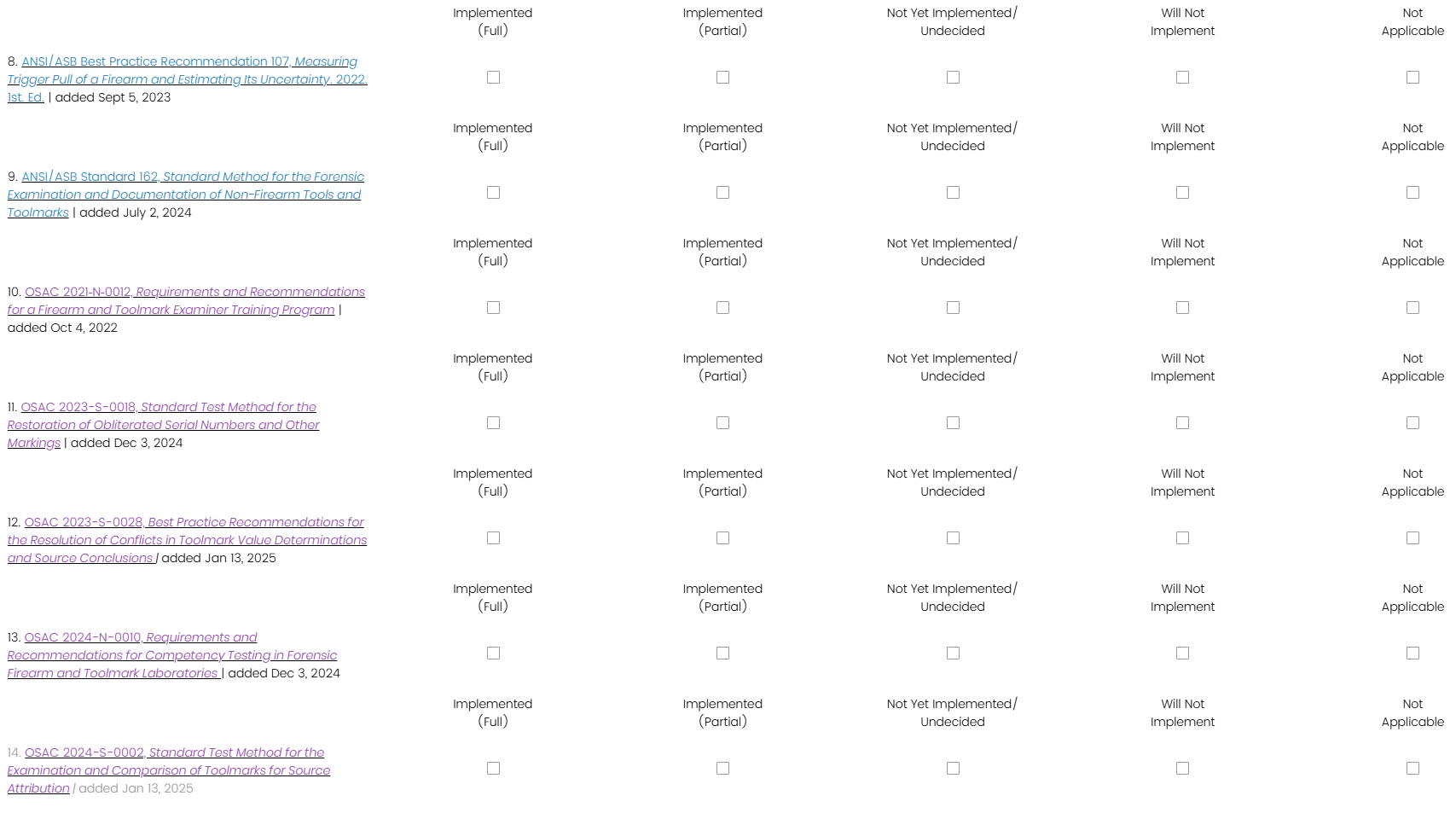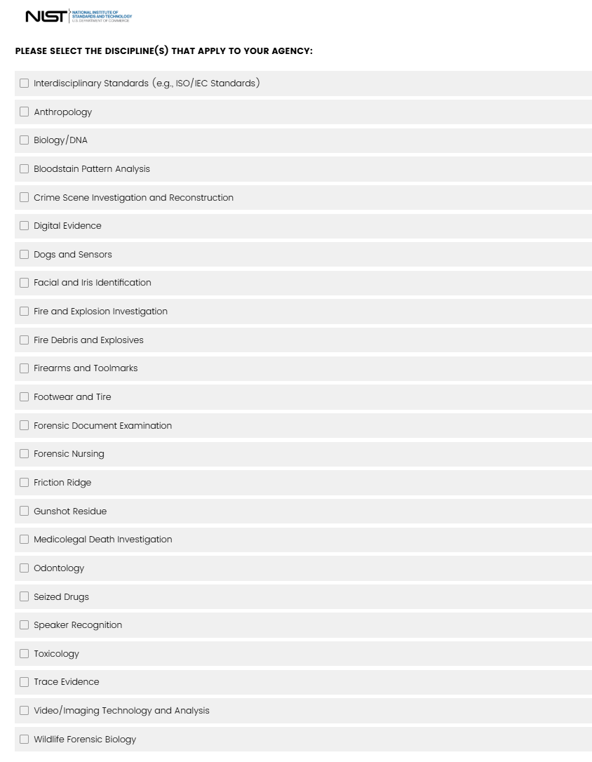 Step 10 (Respondents proceed through disciplines selected in Step 9 and enter responses as applicable)