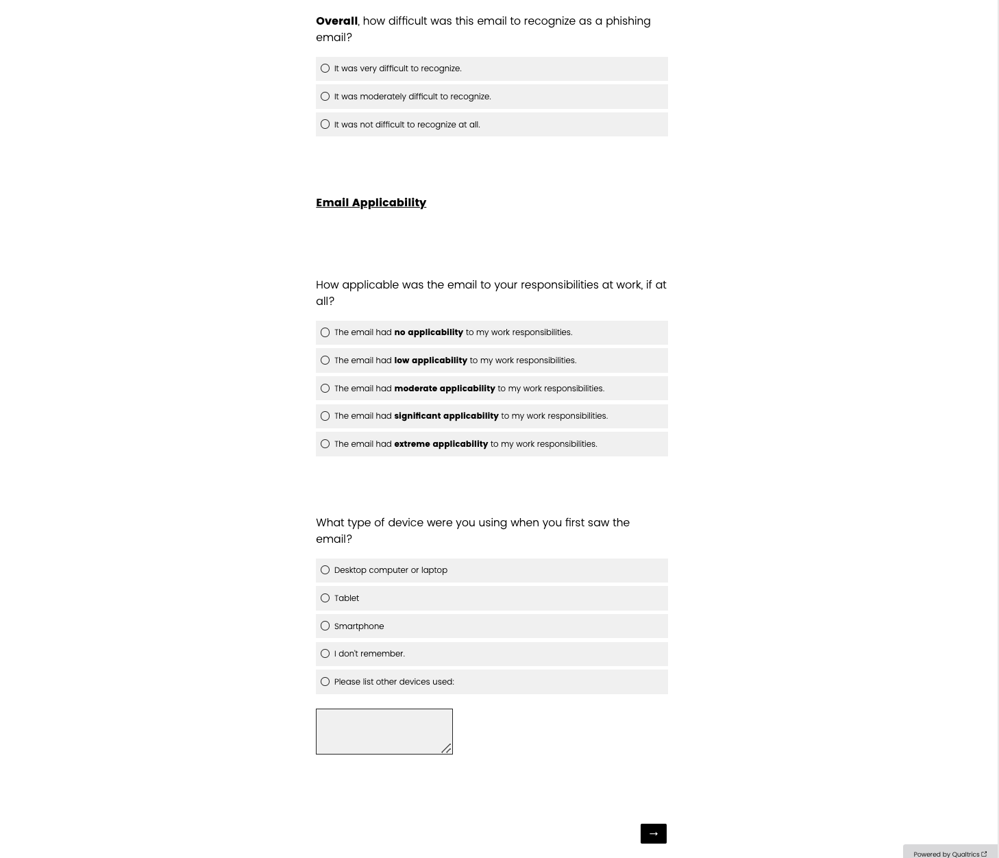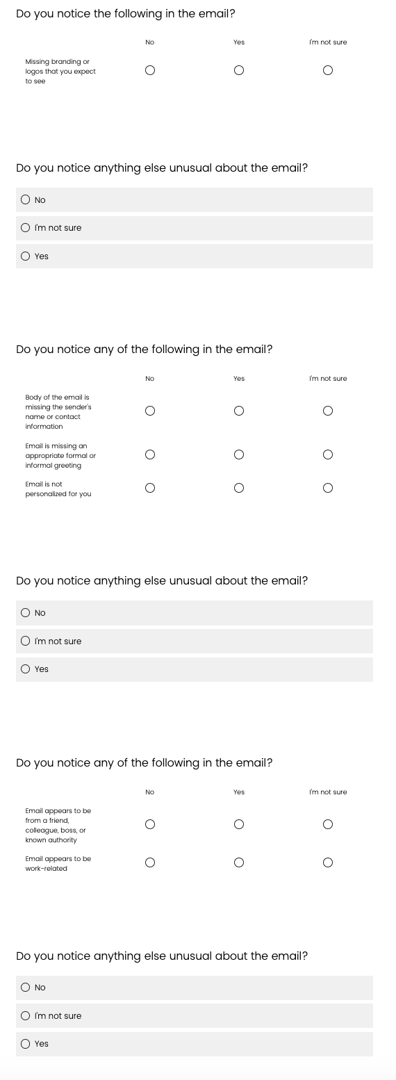 the email” then they are shown these questions. If they do not