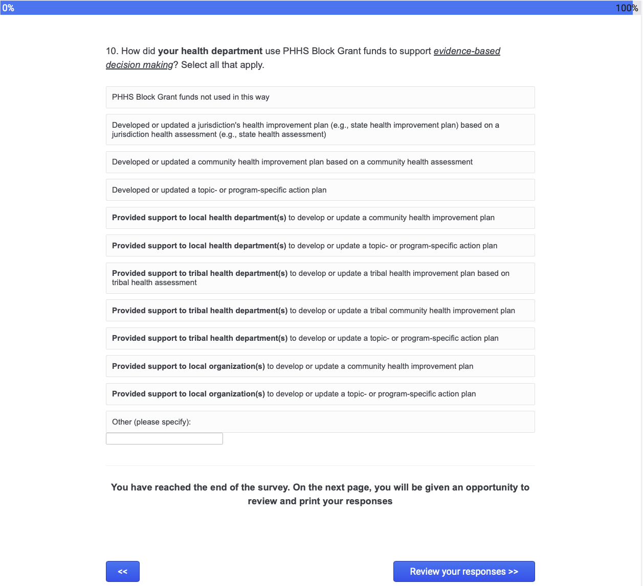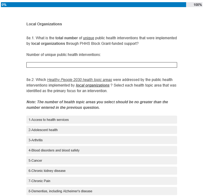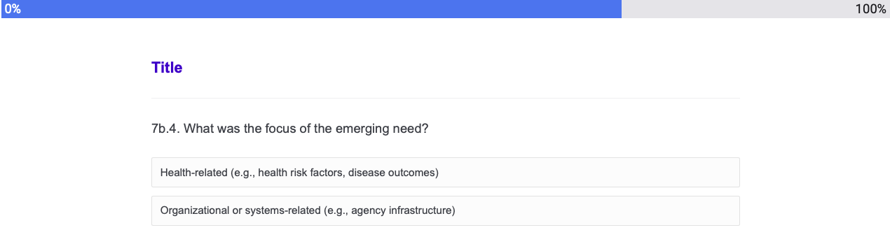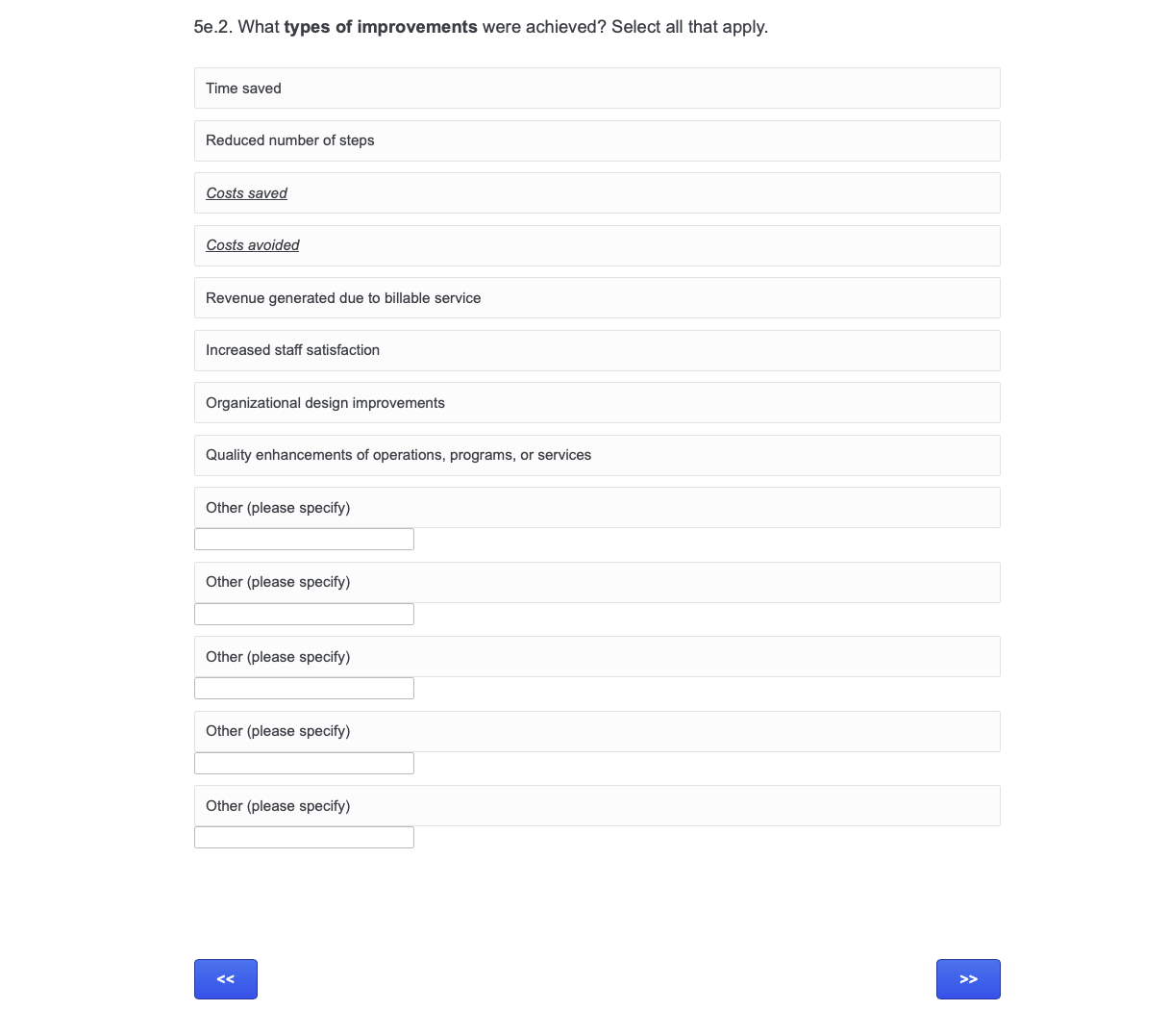 Screen 50: Note: the numerical of value of ‘8,’ shown below, is a piped-text entry based on the value input into Q8e.1. The rows displayed are equal to the items selected in 8e.2