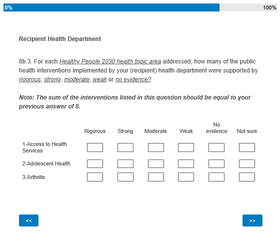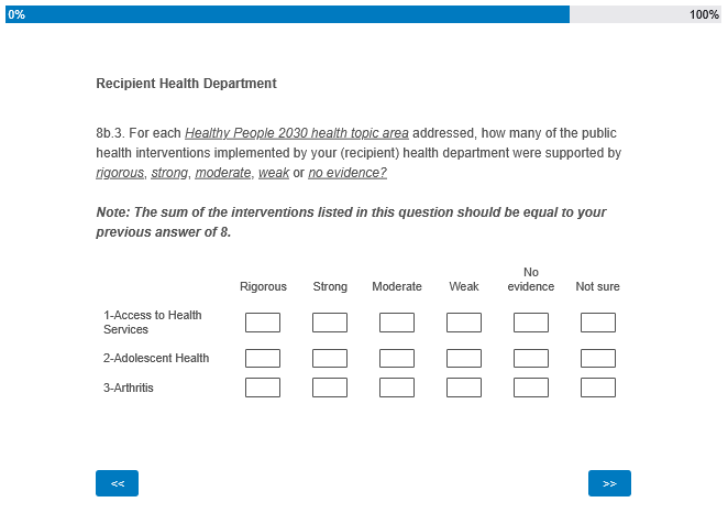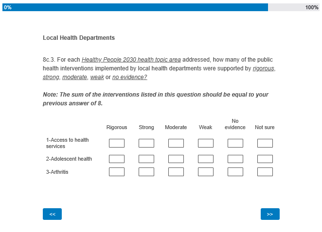 Screen 42: Note: the numerical of value of ‘8,’ shown below, is a piped-text entry based on the value input into Q8b.1. The rows displayed are equal to the items selected in 8b.2