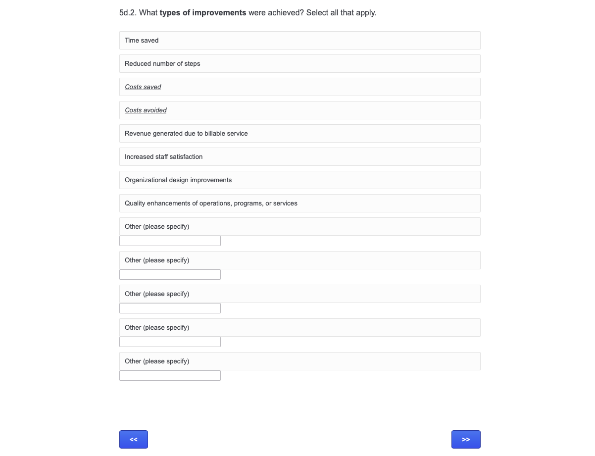 Screen 21: (Note: the numerical of value of ‘8,’ shown below, is a piped-text entry based on the value input into Q5d.1)