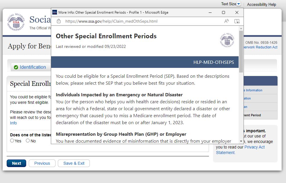 If the user answers Yes to “Does one of the listed Special Enrollment types apply to you?” the dropdown will appear.