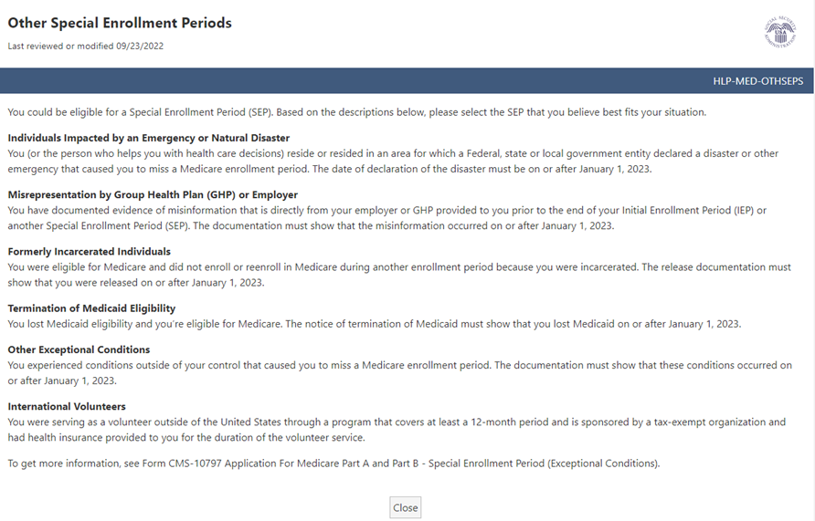 When user expands the dropdown, it will show the list of SEP types they can select from within iClaim.