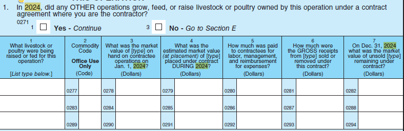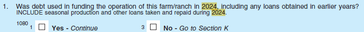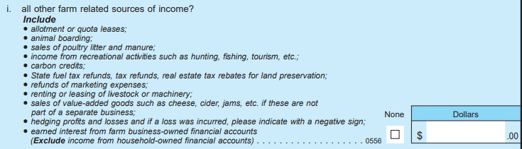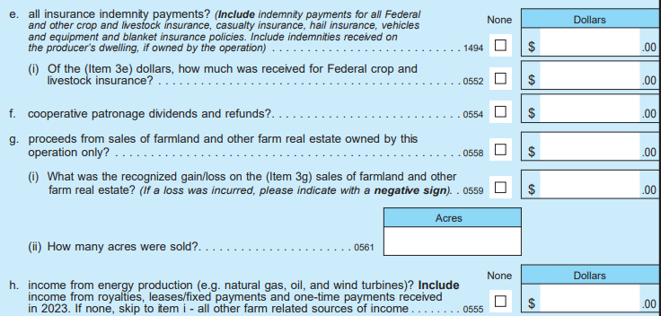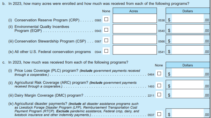 Add new question 2c(iv)a – “Of Item (iv), how much was received from supplemental disaster assistance, including Emergency Commodity Assistance Program (ECAP), Emergency Livestock Relief Program (ELRP), and Supplemental Disaster Relief Program (SDRP)?”