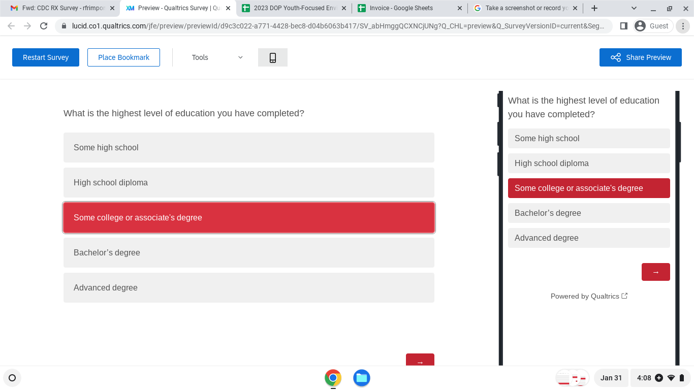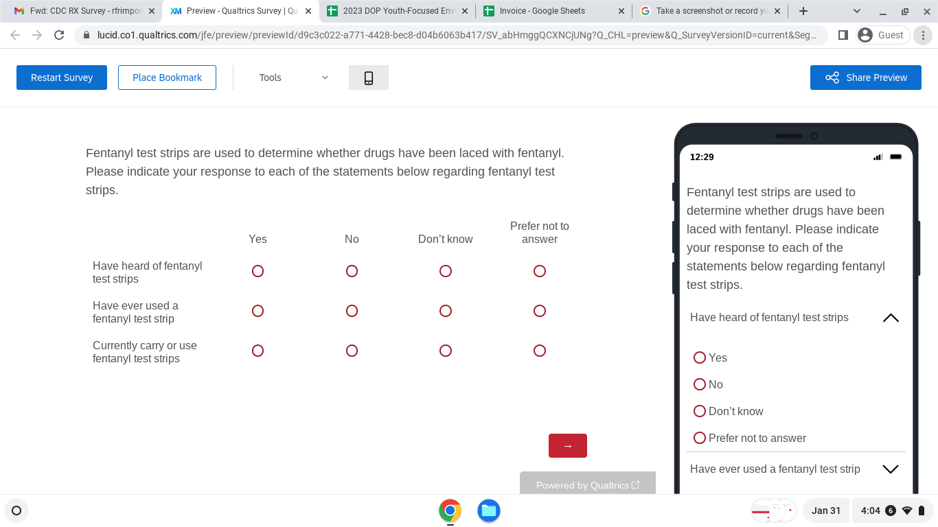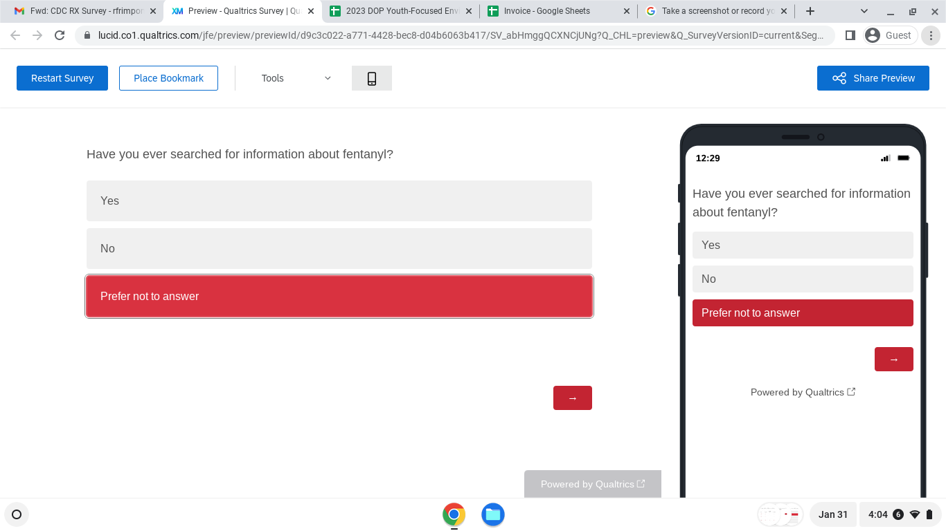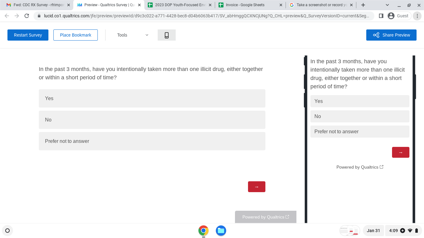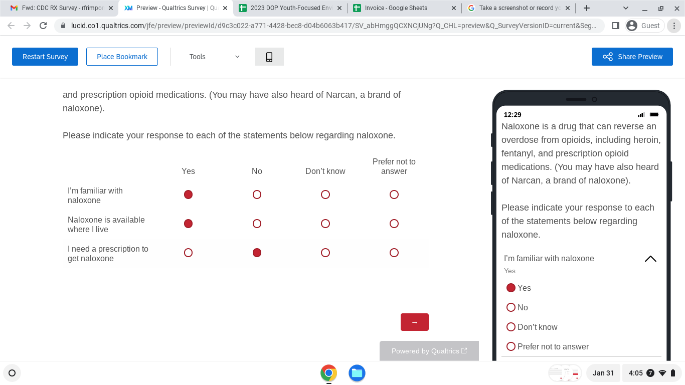 The Centers for Disease Control and Prevention (CDC) developed and launched the Stop Overdose campaigns, four education campaigns, to prevent and reduce drug overdoses. This is research in which you will respond to multiple choice and open-ended questions to give your opinions about Stop Overdose campaign messages and materials. Participation is voluntary and you may complete all or some of the survey. If you have questions about this research, you may contact the principal investigator, Everett L. Long, PhD., by email at elong@brunetgarcia.com or phone, (704)-657-5338.