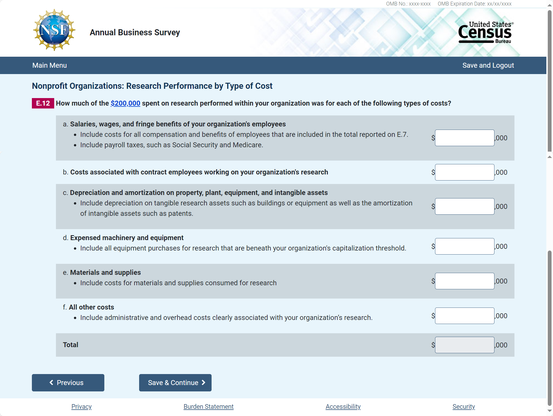 E.12 Nonprofit Organizations: Research by Type of Cost