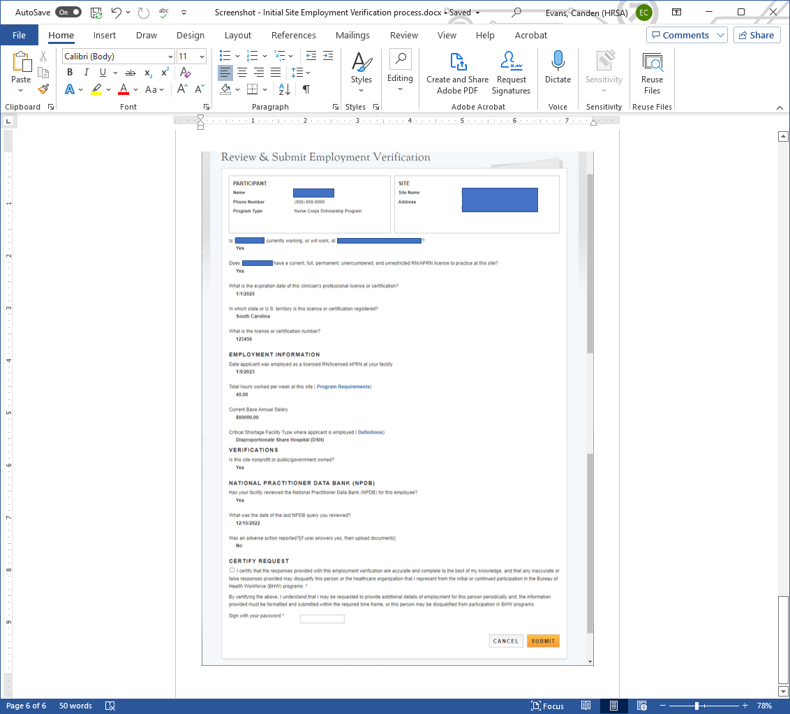 Public Burden Statement: The purpose of the Nurse Corps Scholarship Program (Nurse Corps SP) is to provide scholarships to nursing students in exchange for a minimum two-year full-time service commitment (or part-time equivalent), at an eligible health care facility with a critical shortage of nurses. The information that applicants supply is used to evaluate their eligibility, qualifications and to assess their continued compliance with the applicable standards for participation in the Nurse Corps SP. The OMB control number for this information collection is 0915-0301 and it is valid until xx/xx/xx. This information collection is required to obtain a benefit (Section 846(d) of the Public Health Service Act (42 United States Code 297n (d)), as amended). Data will be private to the extent permitted by the law. Public reporting burden for this collection of information is estimated to average approximately 36 minutes per response, including the time for reviewing instructions, searching existing data sources, and completing and reviewing the collection of information. Send comments regarding this burden estimate or any other aspect of this collection of information, including suggestions for reducing this burden, to HRSA Reports Clearance Officer, 5600 Fishers Lane, Room 14NWH04, Rockville, Maryland, 20857.