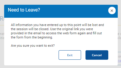Reminder - You must complete and submit the form in a single session. For security reasons and protection of personal data, your session will time out after 15 minutes of inactivity.