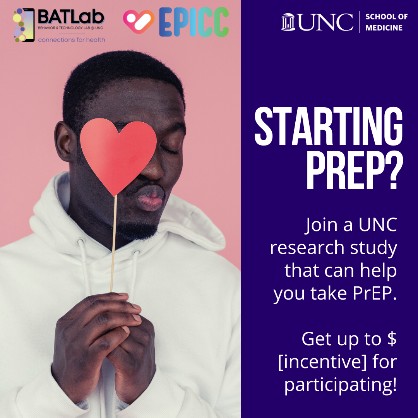 Recibe información sobre PrEP en tu teléfono. Únete al estudio de investigación EPICC+, participa desde casa y recibe hasta [incentive].