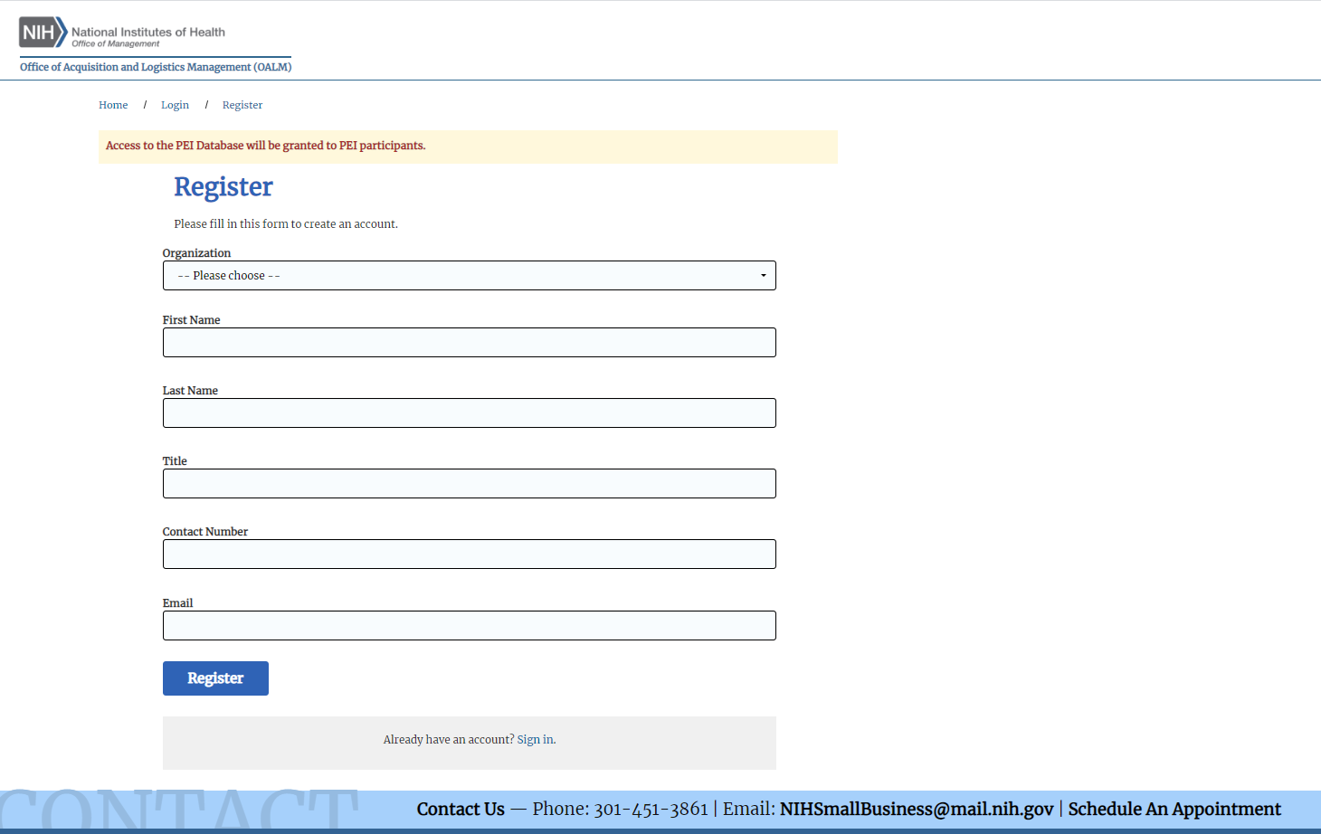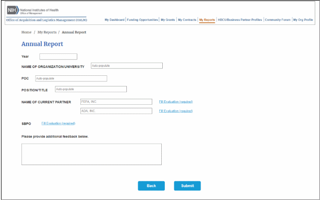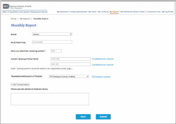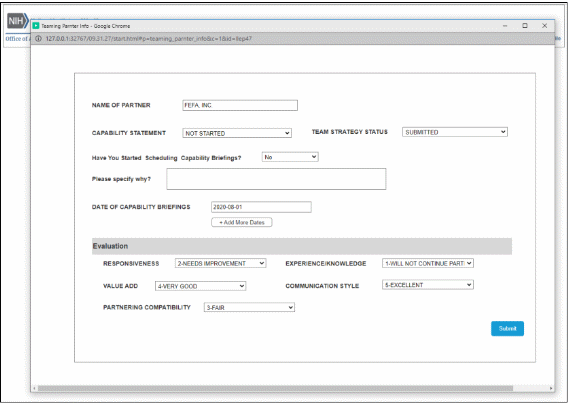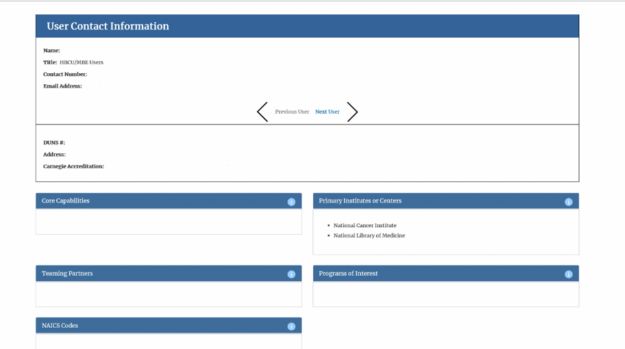 Input organizational data to create a profile accessible to potential teaming partners and NIH staff.
