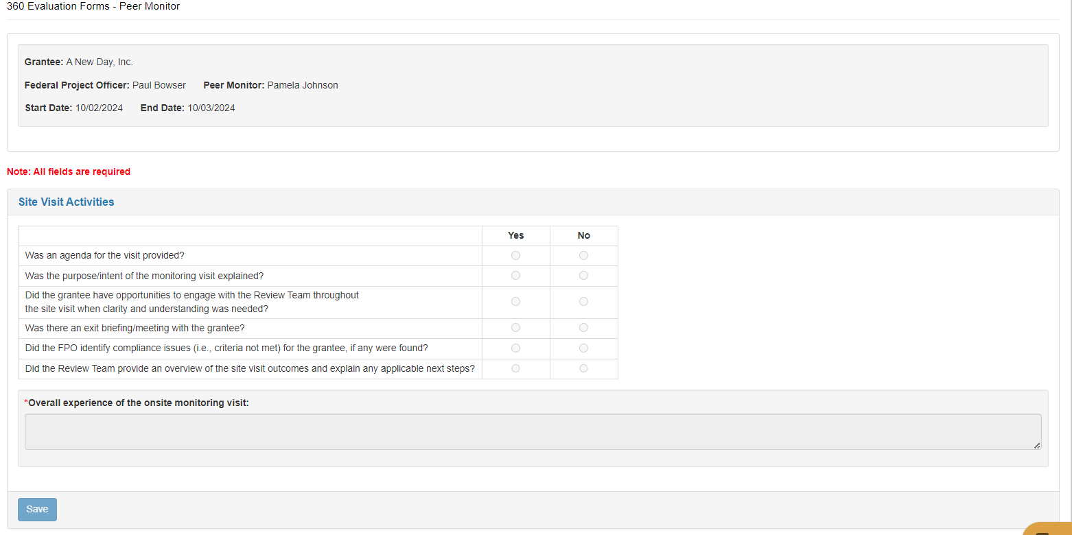 360 Feedback Forms for the Runaway and Homeless Youth Monitoring Site Visits