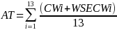 AT. Average adjusted Total Continued Weeks Claimed. Report the average of the sum of the CW and WSECW figures for the most recent calendar week of unemployment experience and the immediately previous 12 calendar weeks of unemployment experience (CW+WSECW) divided by 13; i.e.,