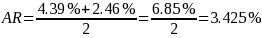 where R1 and R2 refer to the rates for the corresponding 13-week period of 1 year ago and 2 years ago, respectively. The quotient AR is to be computed to three decimal places, is not to be otherwise rounded, and is to be expressed as a percent. Example: If R1=4.39% and R2=2.46% then: