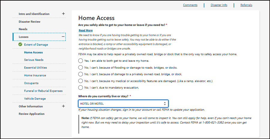 • If you had disaster damage to your home or personal property, FEMA may confirm the damage by an onsite or remote inspection.
