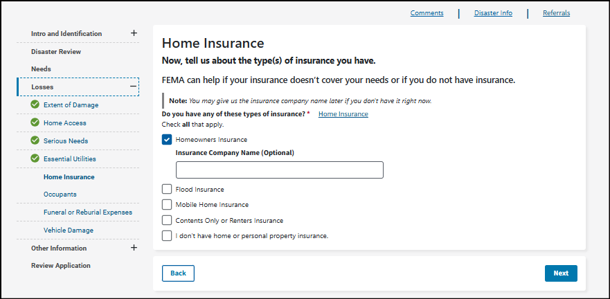 • If you have homeowner's insurance, FEMA may not send an inspector right away. You may need to submit insurance documents before we can schedule an inspection.