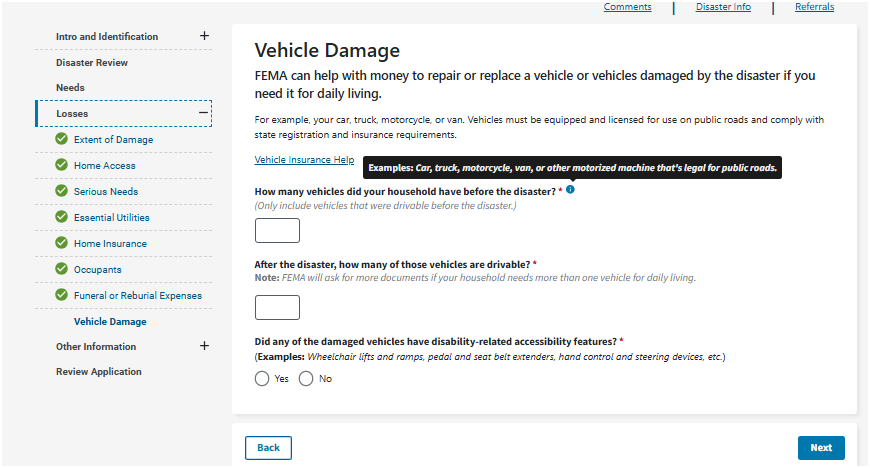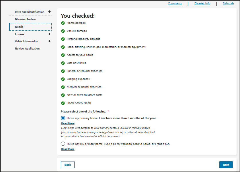 This may be your home address, where your vehicle was damaged, where you sustained an injury from the disaster, or where your loved one passed away from the disaster. To get assistance, your damaged property or where the loss occurred must be in a declared disaster area.