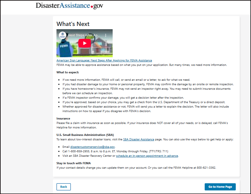 American Sign Language: Next Steps After Applying for FEMA Assistance