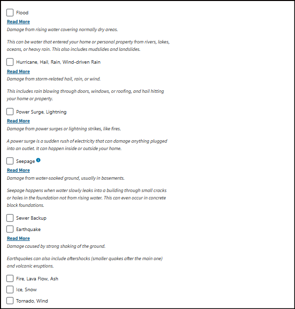 I'm going to read a list to you. Let me know which damage types apply to you. You can choose all that apply.