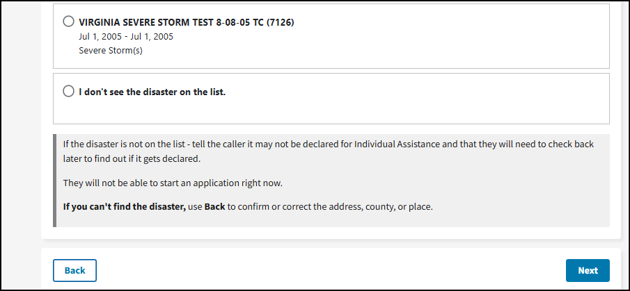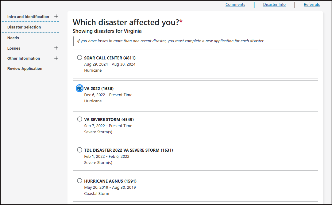 You are applying for VA SEVERE STORM that occurred 09/07/2022 - Present Time.
