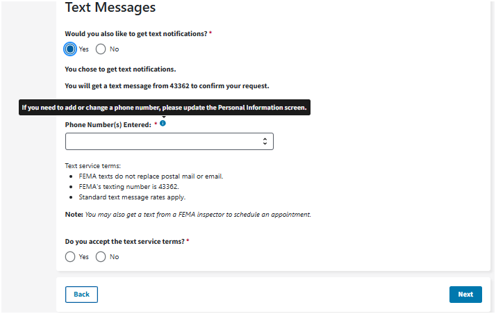 If your contact details change you can update them on your account. Or you can call the FEMA Helpline at 800-621-3362.