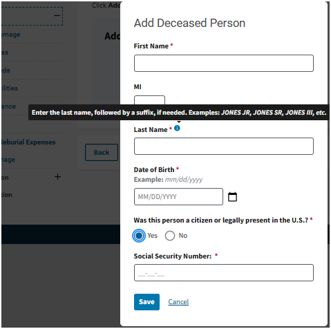 Funeral Only: Does the caller only have funeral expenses? If so, you must ask for the name and Social Security number of the person handling those expenses for the person who died.