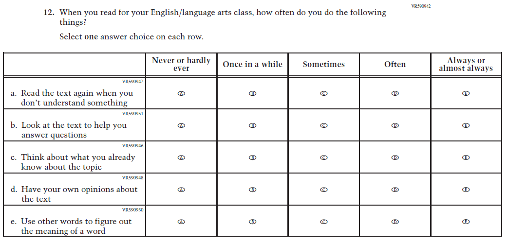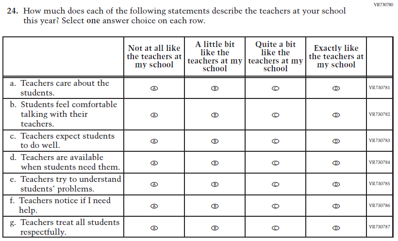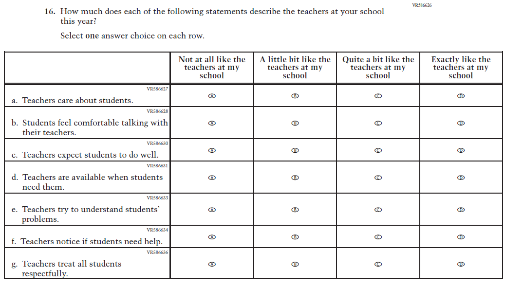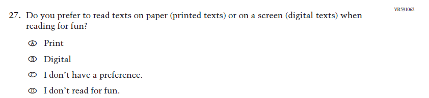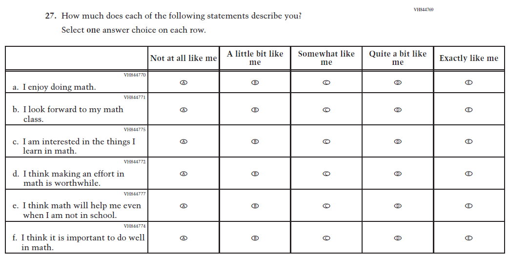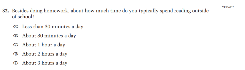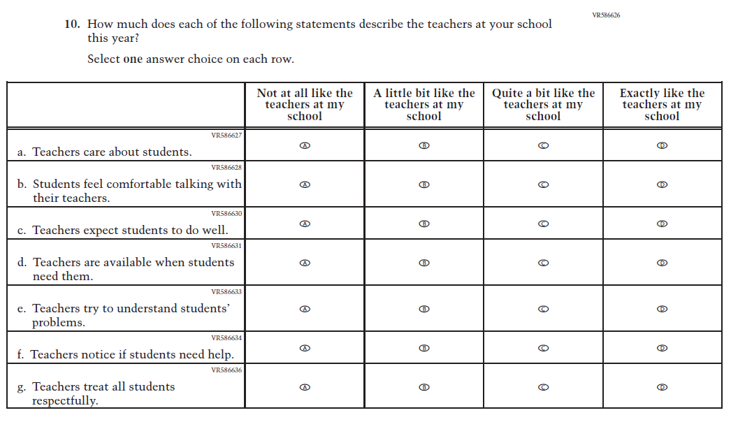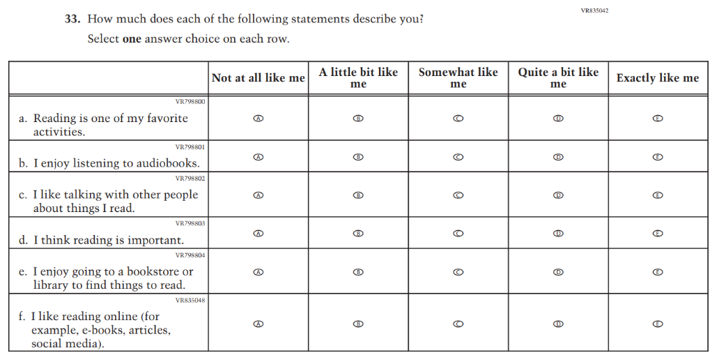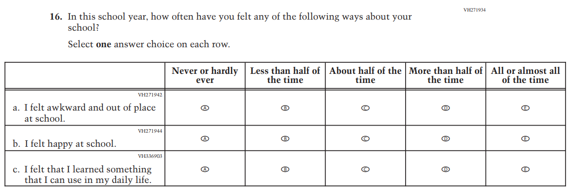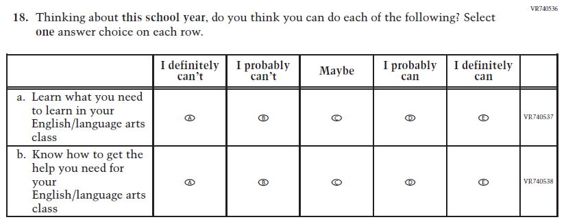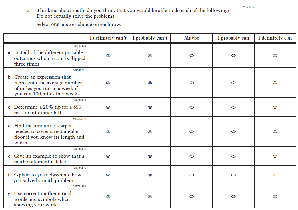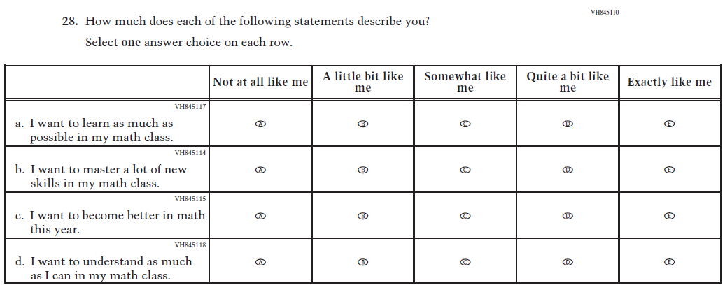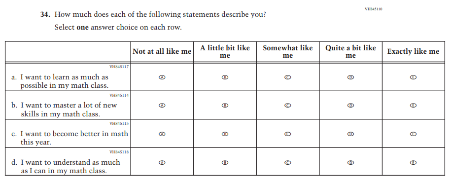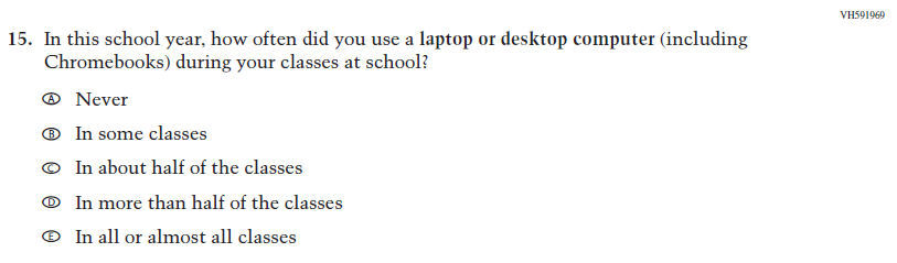 This Item was added to understand students’ experiences with using their devices to take the assessment. |