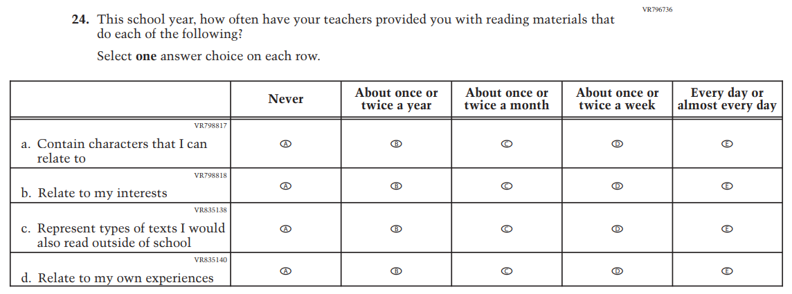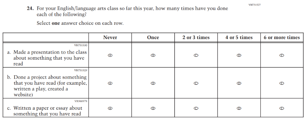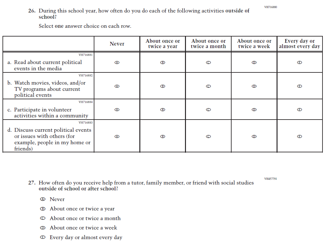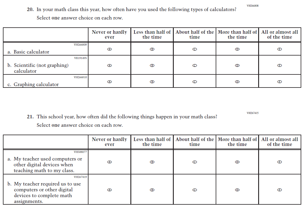 Learning Recovery Items were dropped from the 2026 NAEP Assessment. |
