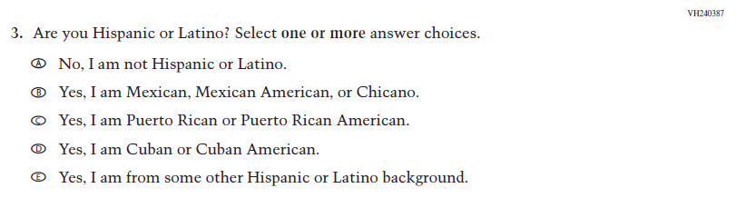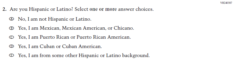 This Item was dropped and replaced with an updated Item (VR858698) that adheres to OMB updated Statistical Policy Directive No. 15. |