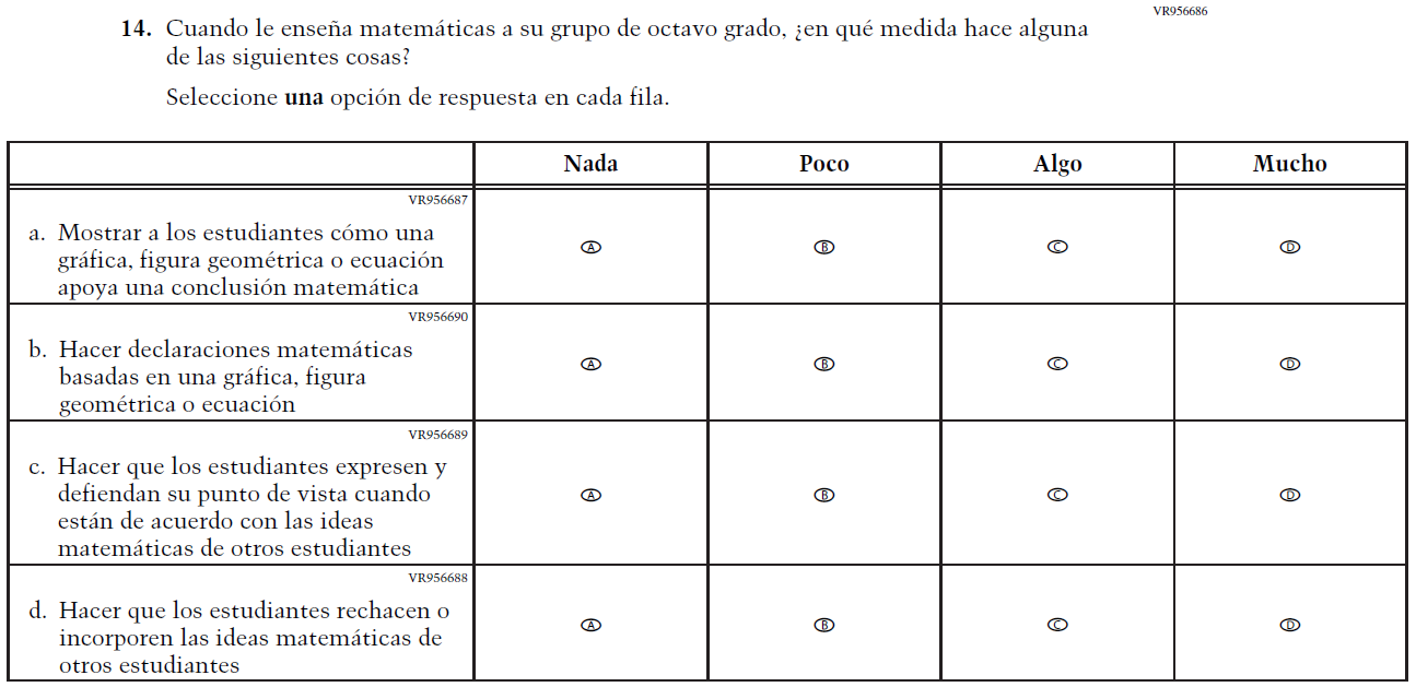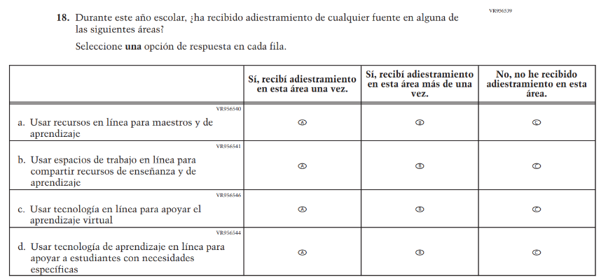 For 2026, we have aligned Inline Directions in Teacher and School Items with the Directions currently used in Student Items. Also, SubItem e. from 2024 was dropped for 2026. |