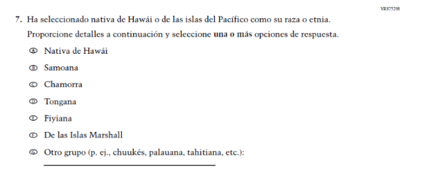 This Item was dropped and replaced with an updated Item (VR862574) that adheres to OMB updated Statistical Policy Directive No. 15. |