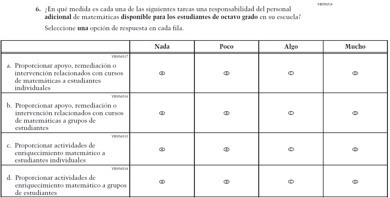 Appendix J-1-s: Spanish Translations of Student Questionnaires 6