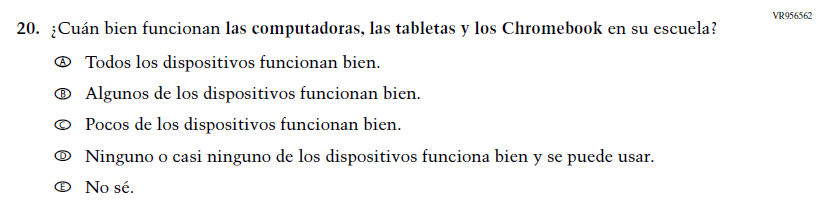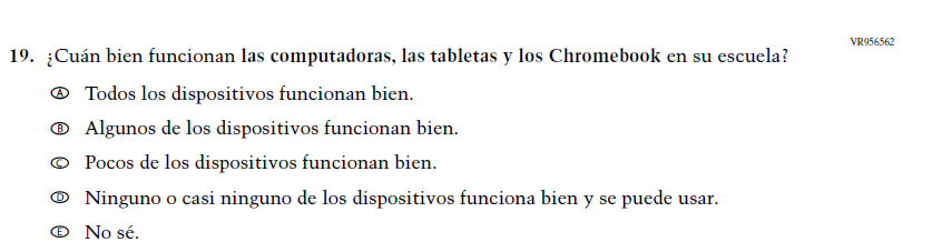 This Item was added to understand students’ experiences with using their devices to take the assessment. |