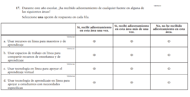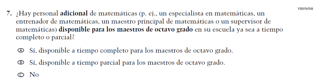 We revised “por ejemplo” to “p.ej.” to be consistent with the phrasing used elsewhere in Teacher and School Items.