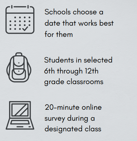 Passive/Implied consent means parents do not need to do anything if they agree to their child’s participation. Students who return signed refusal parental permission forms are opted out of the survey. All other students are eligible to participate.
