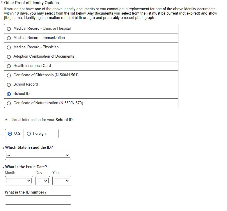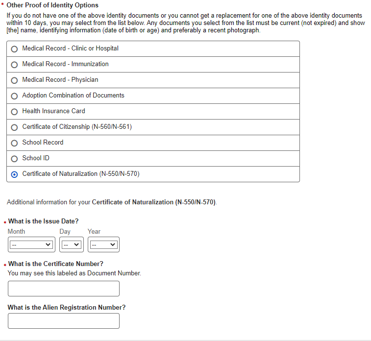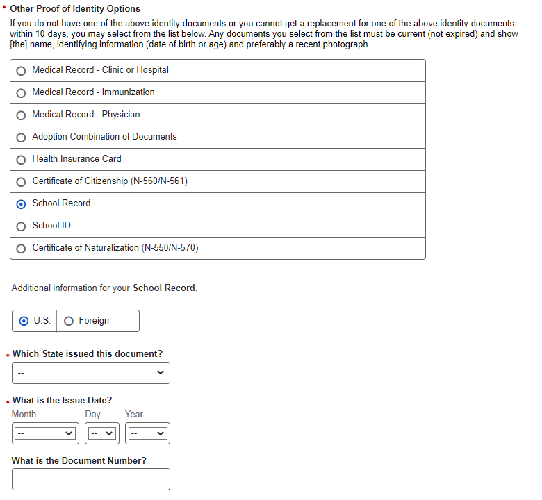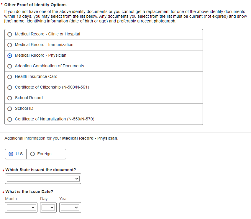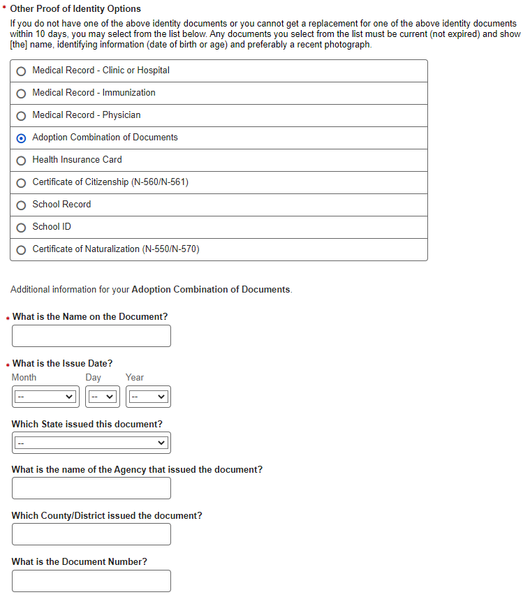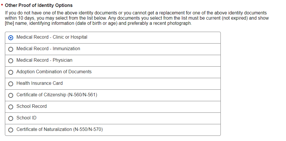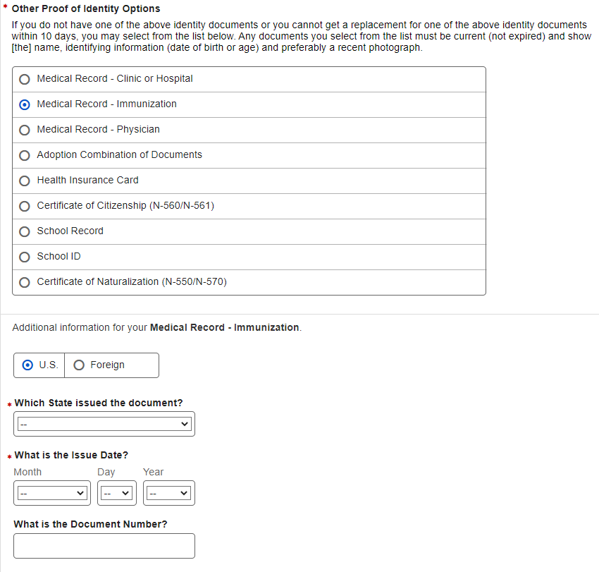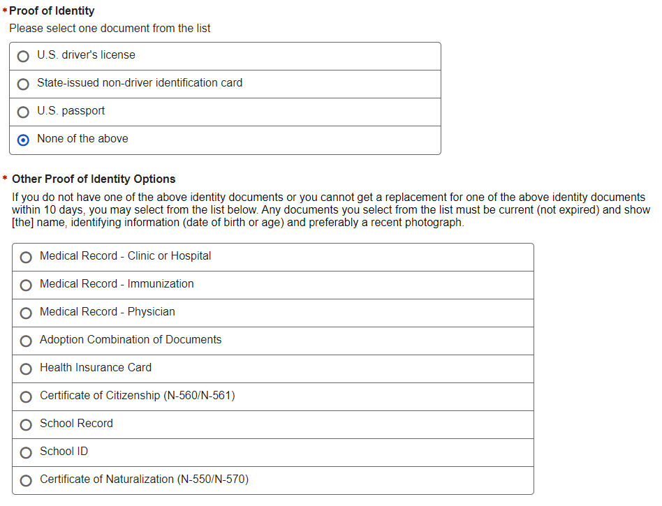 * Other Proof of Identity Options are identical to U.S. Original Self and will not be repeated here.