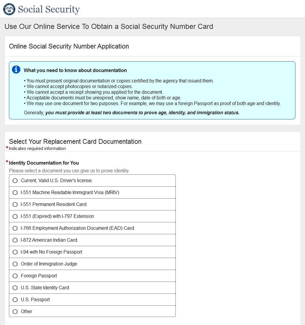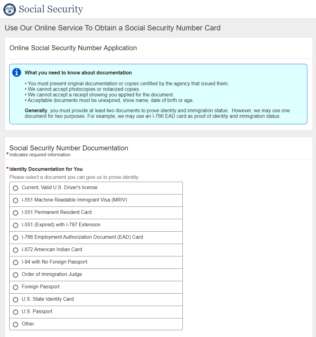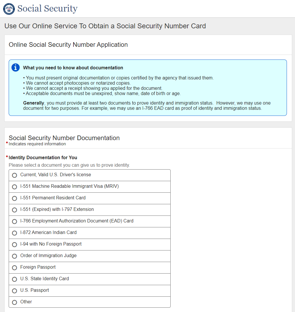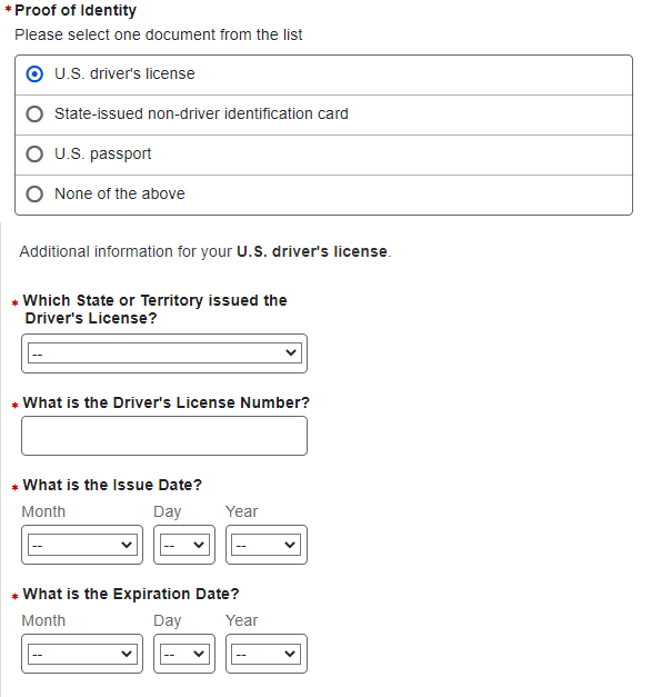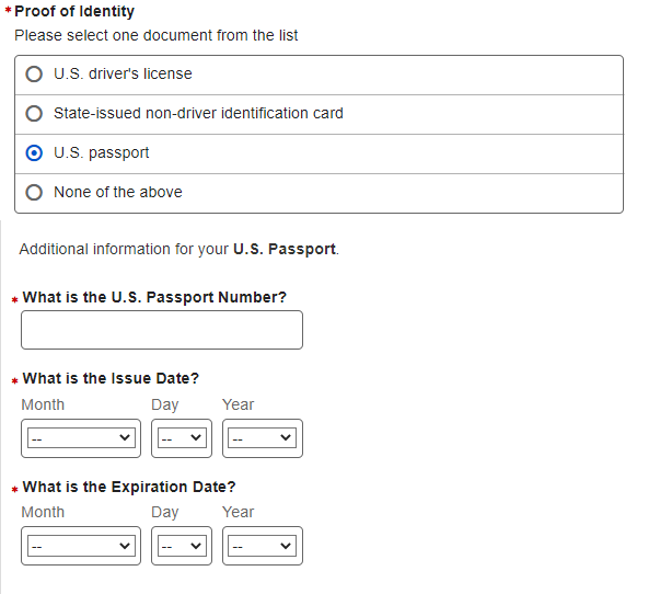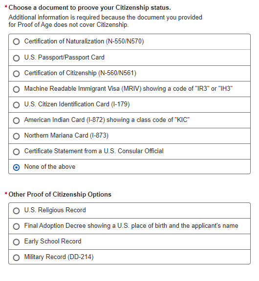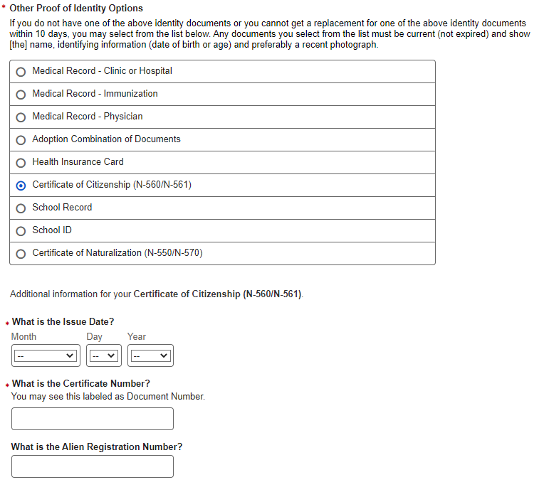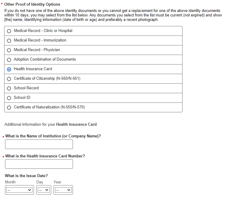 * Other Proof of Identity Options are identical to U.S. Original Self and will not be repeated here.