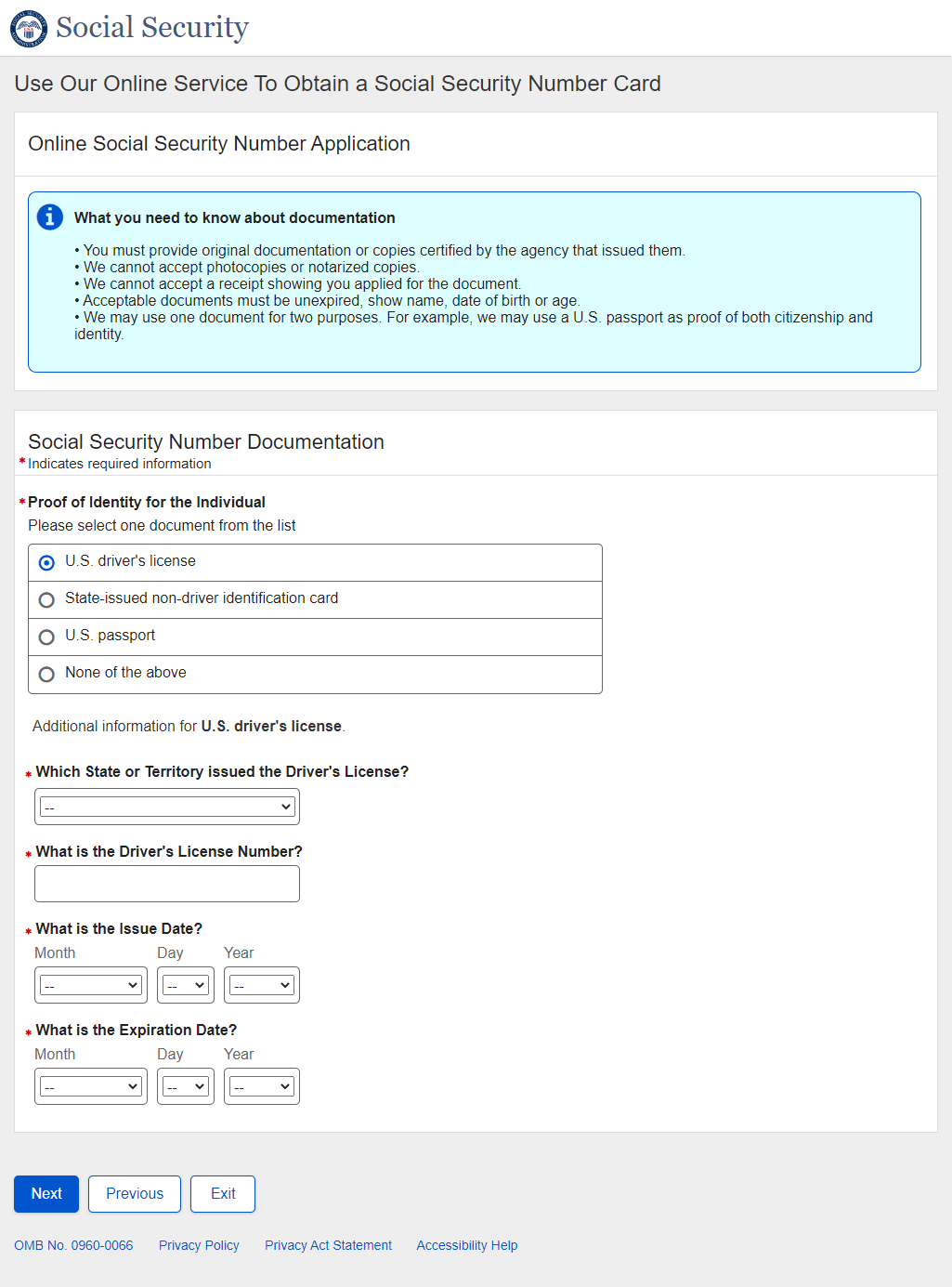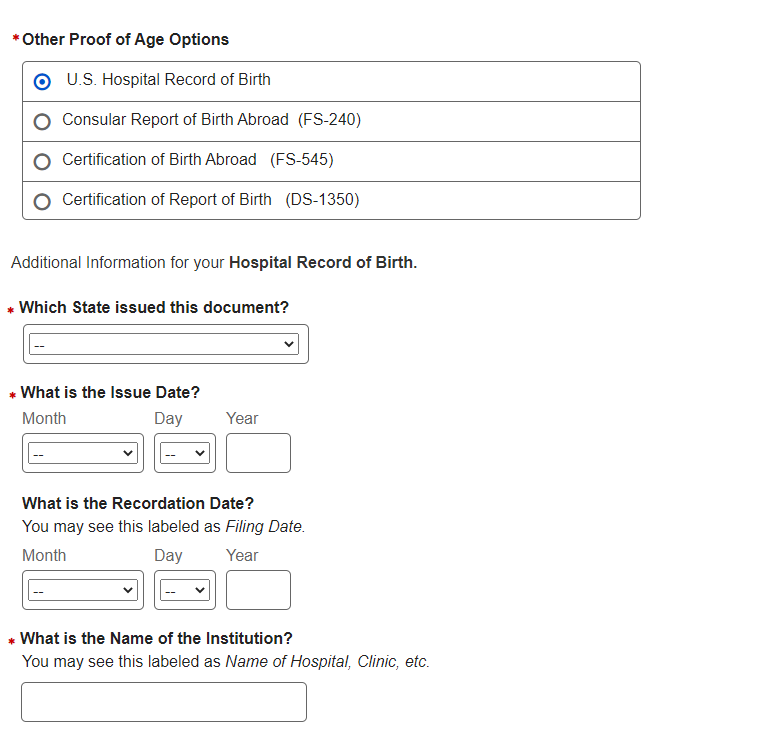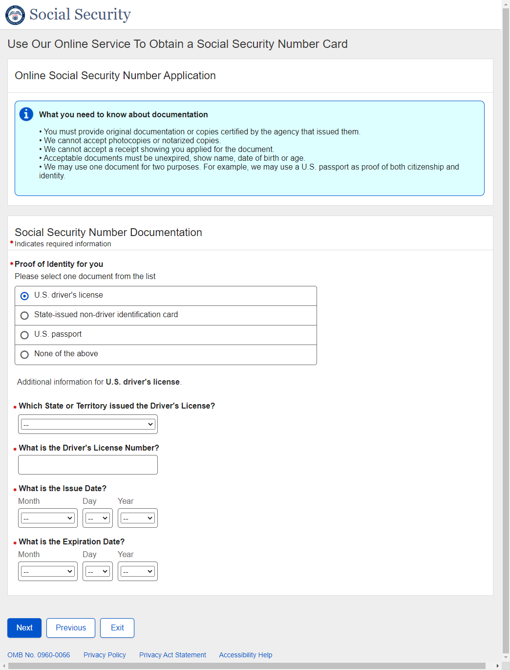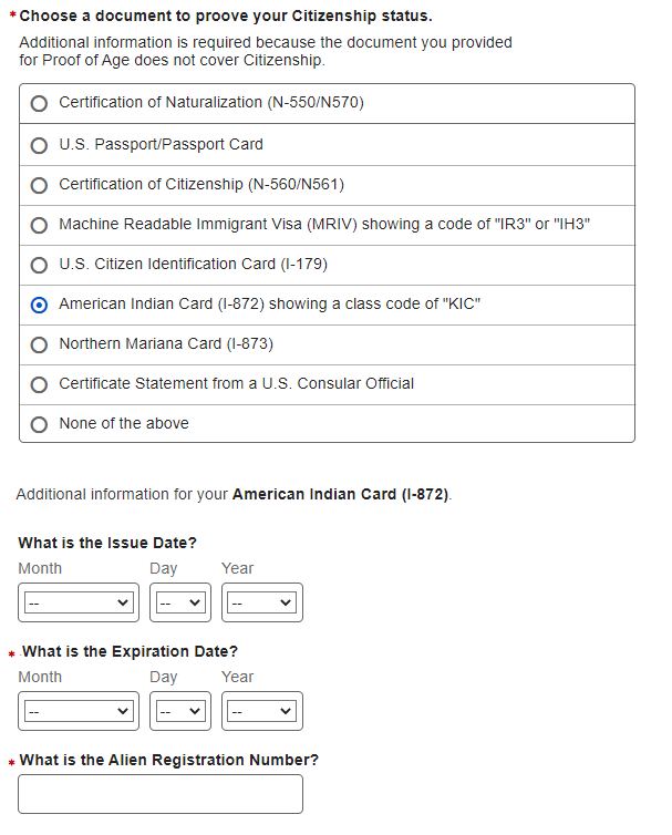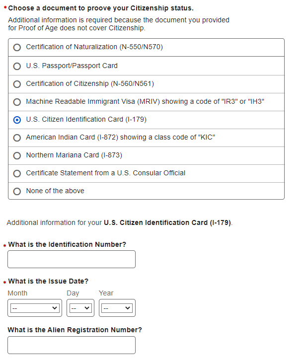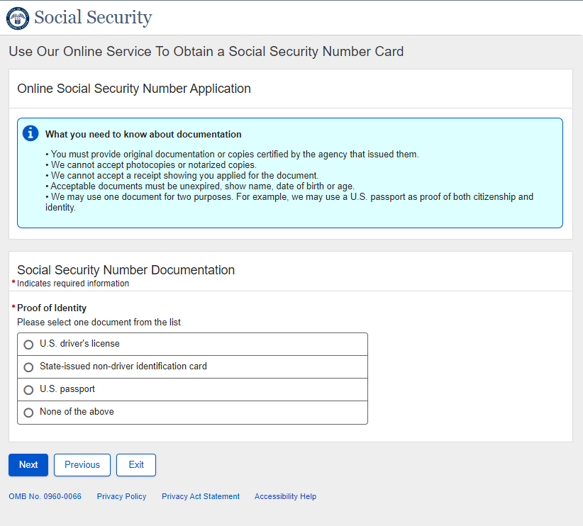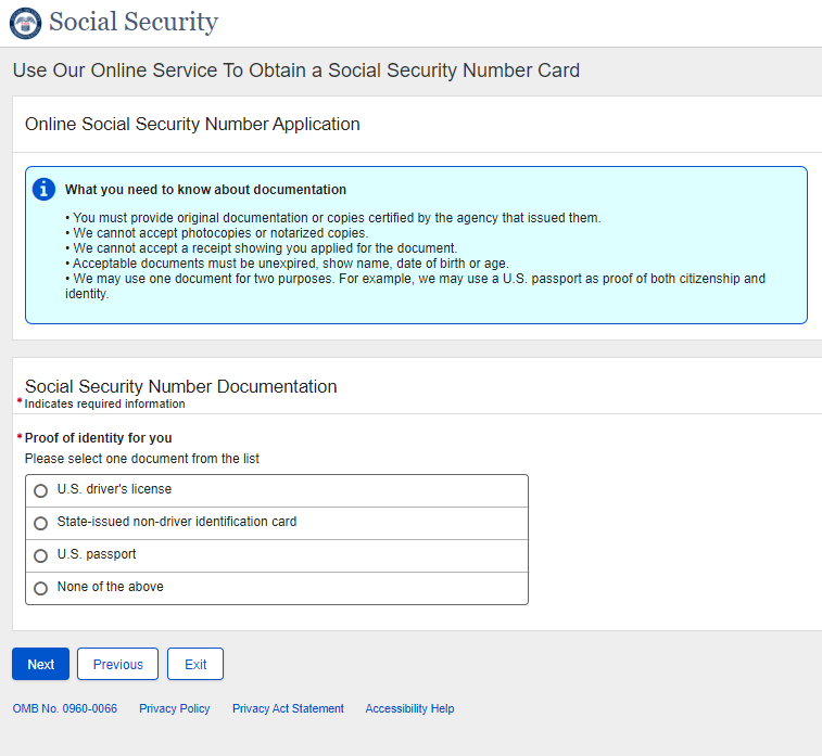 * Other Proof of Identity Options are identical to U.S. Original Self and will not be repeated here.