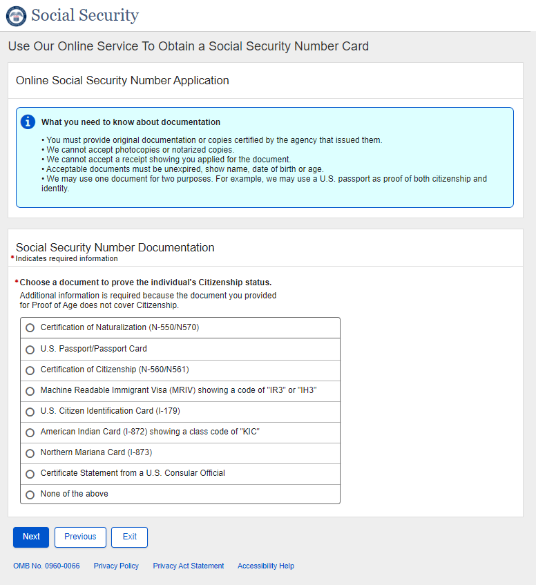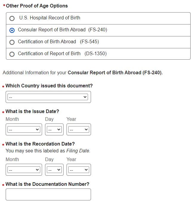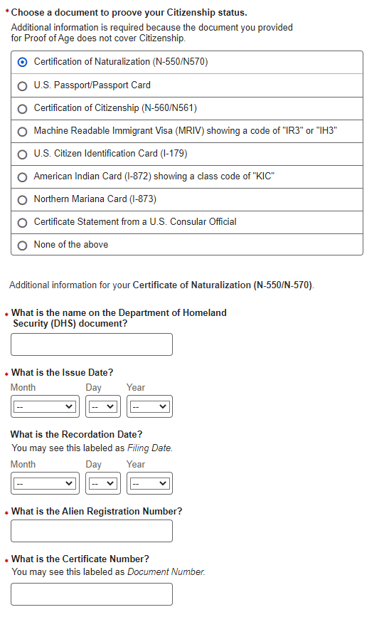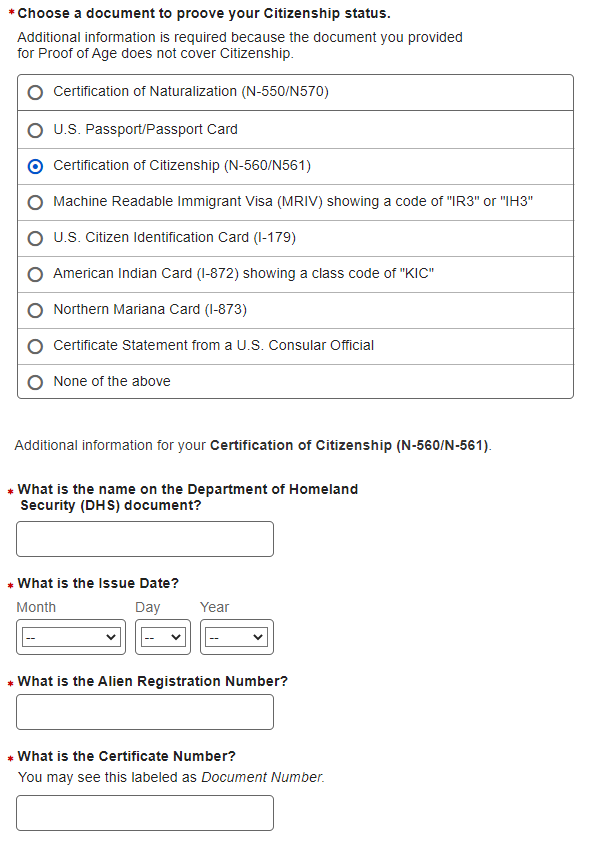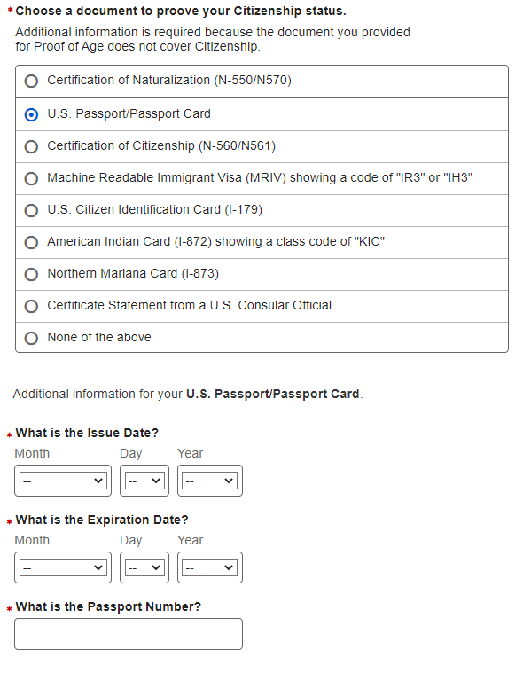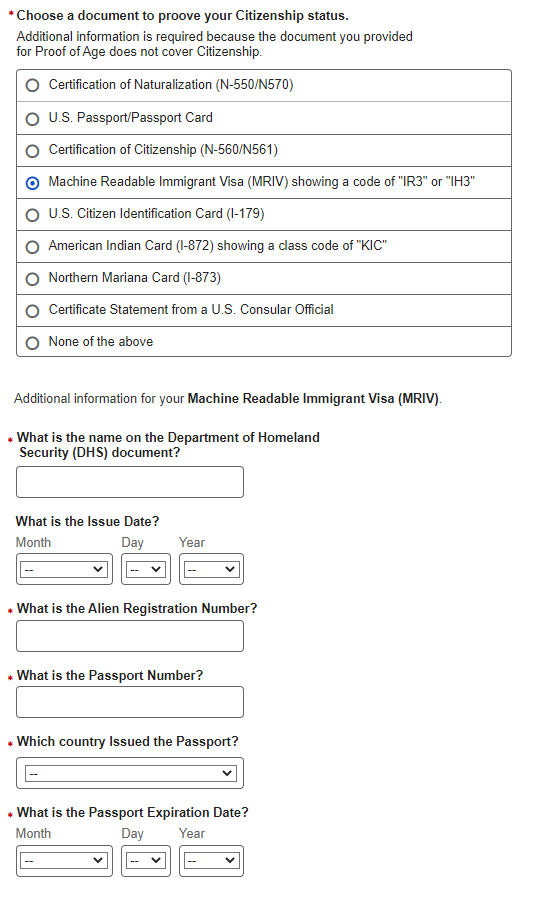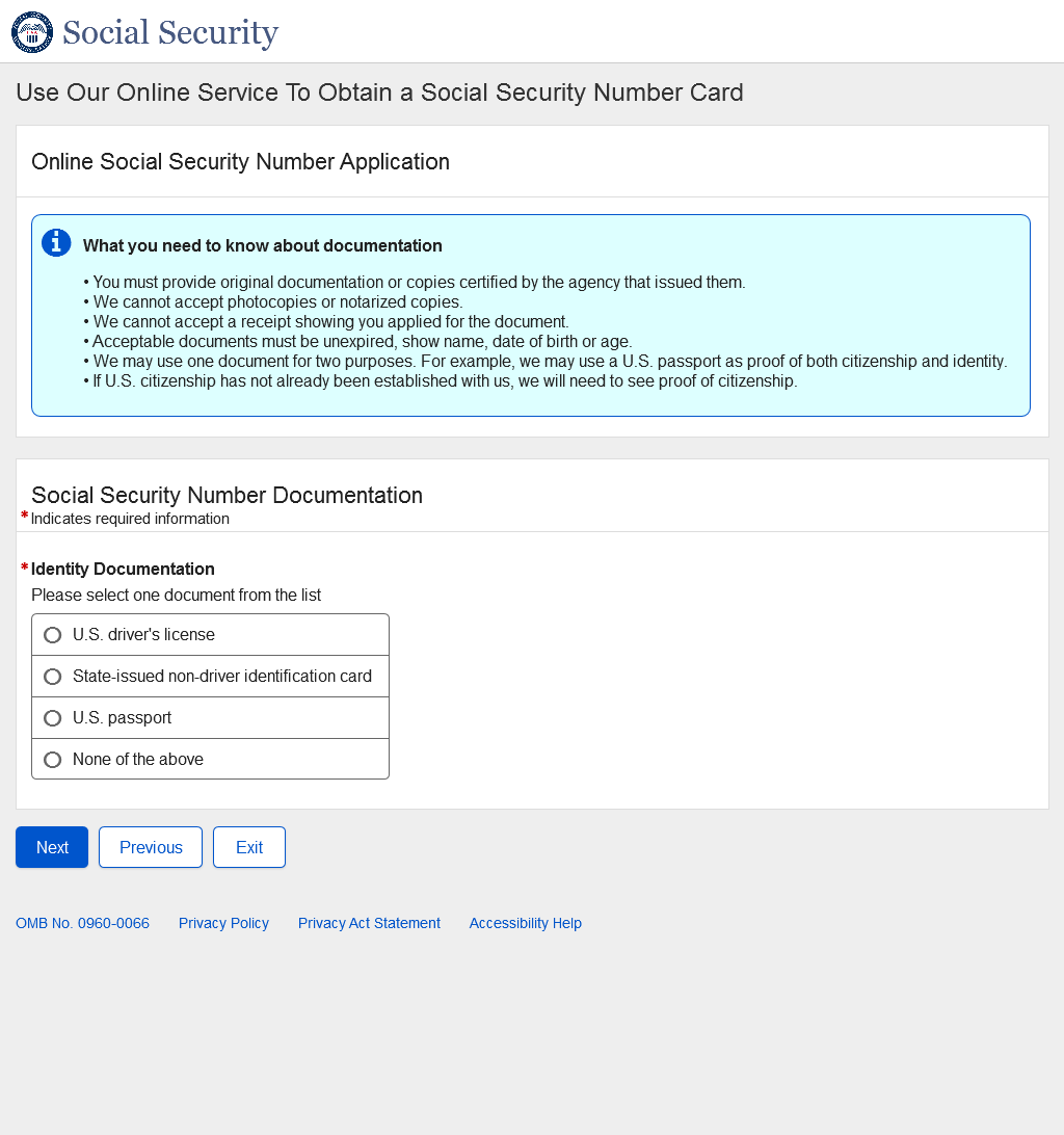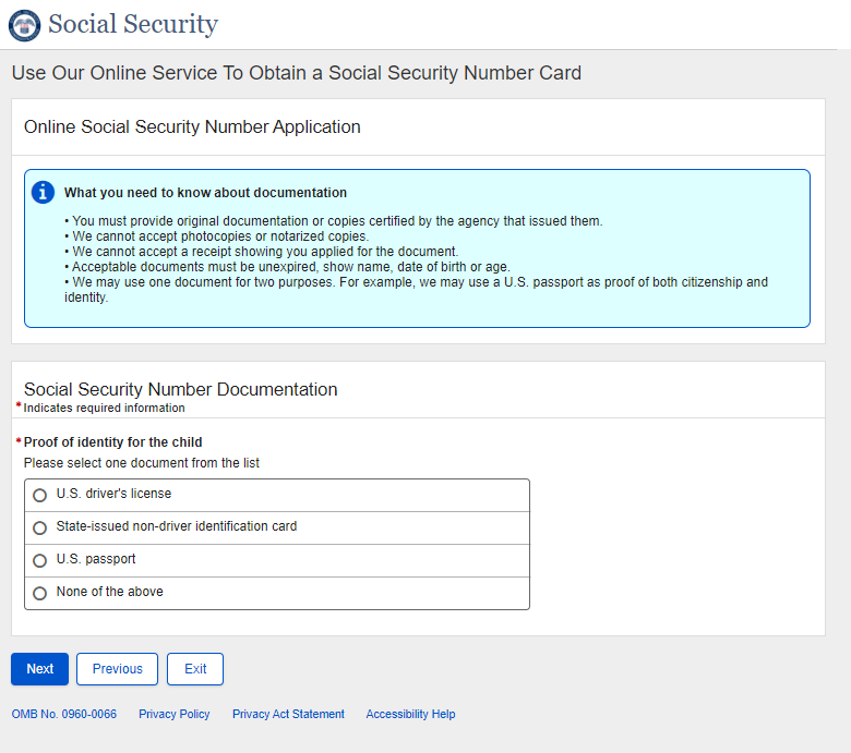 * Other Proof of Identity Options are identical to U.S. Original Self and will not be repeated here.
