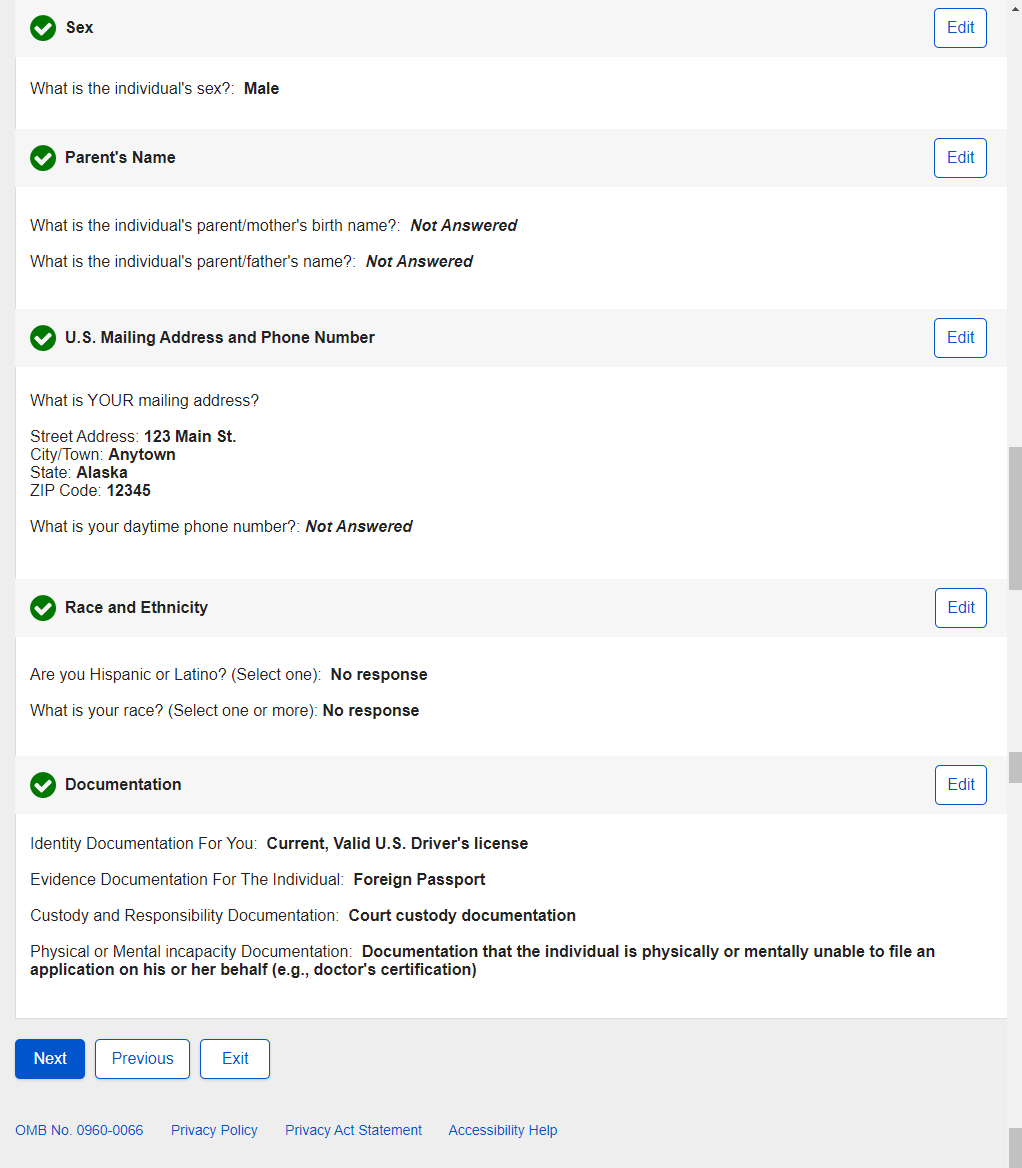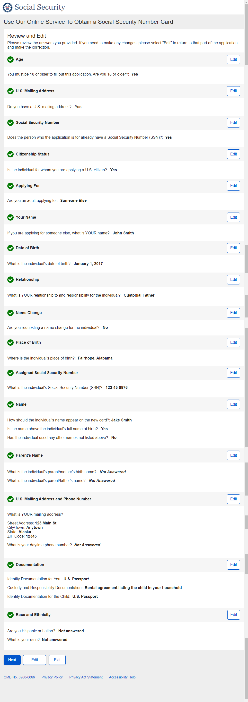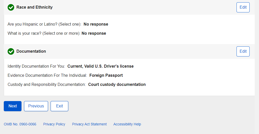U.S. Replacement Someone Else Child - Review and Edit – Continued