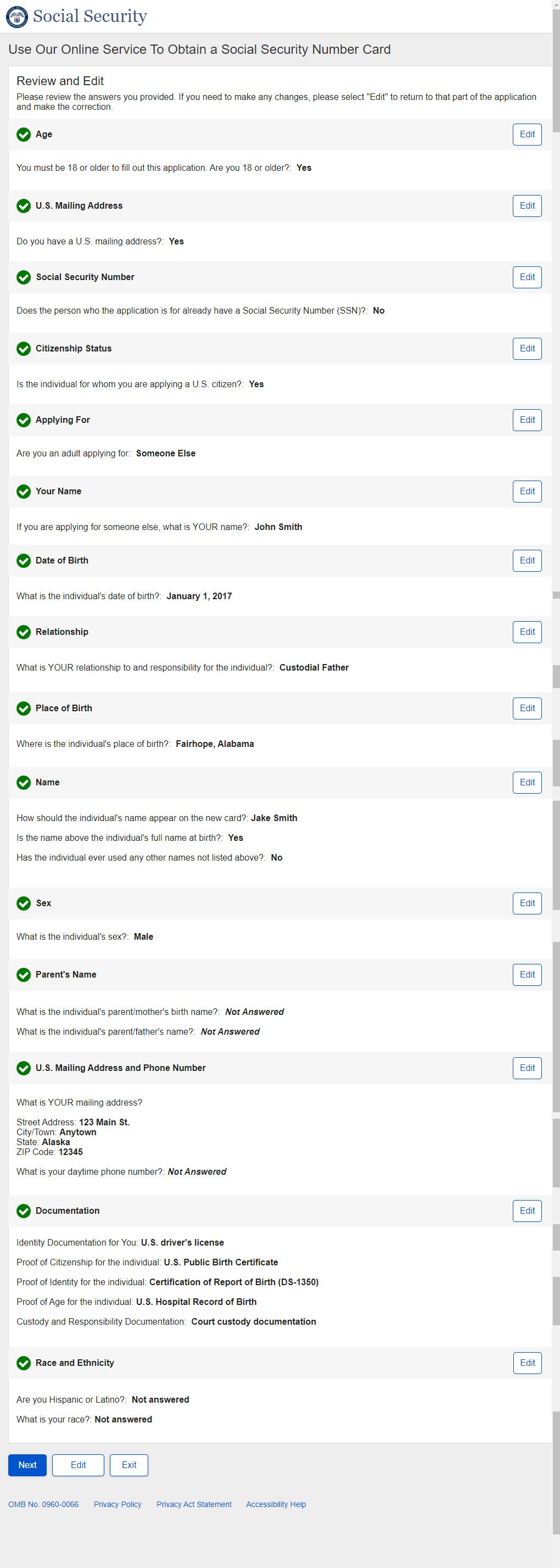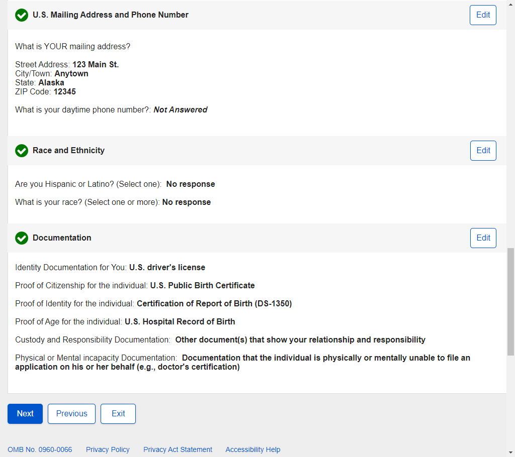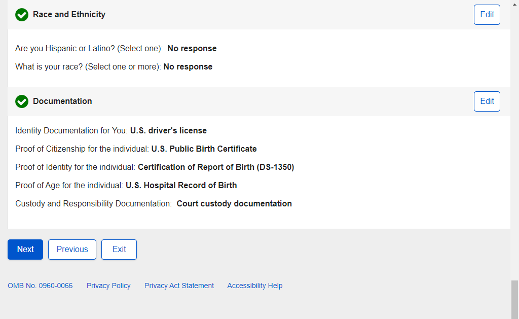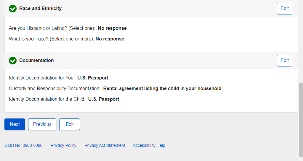 U.S. Replacement Someone Else Child - Review and Edit – Continued