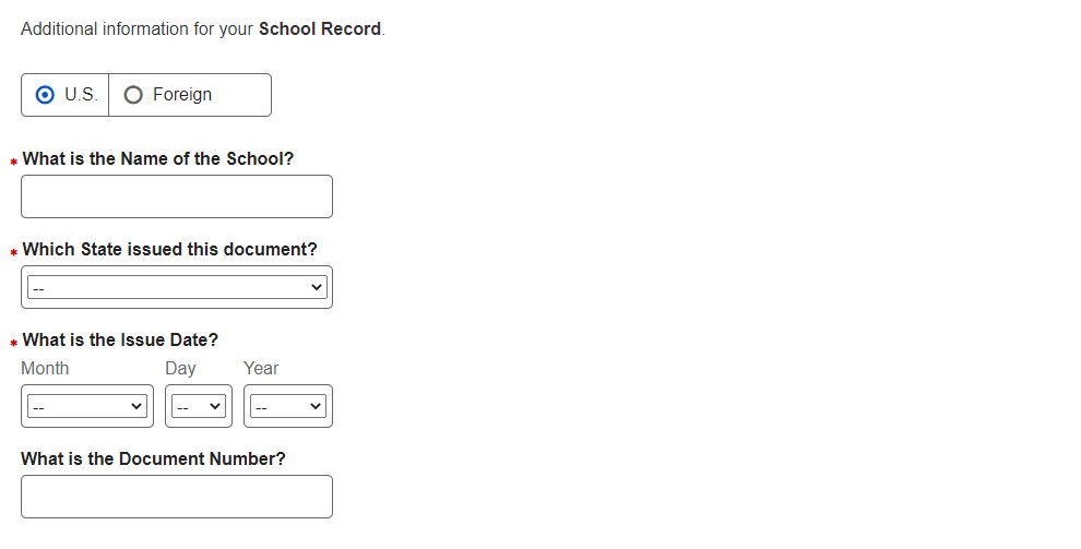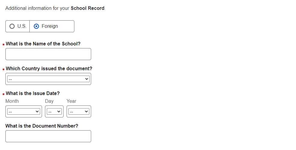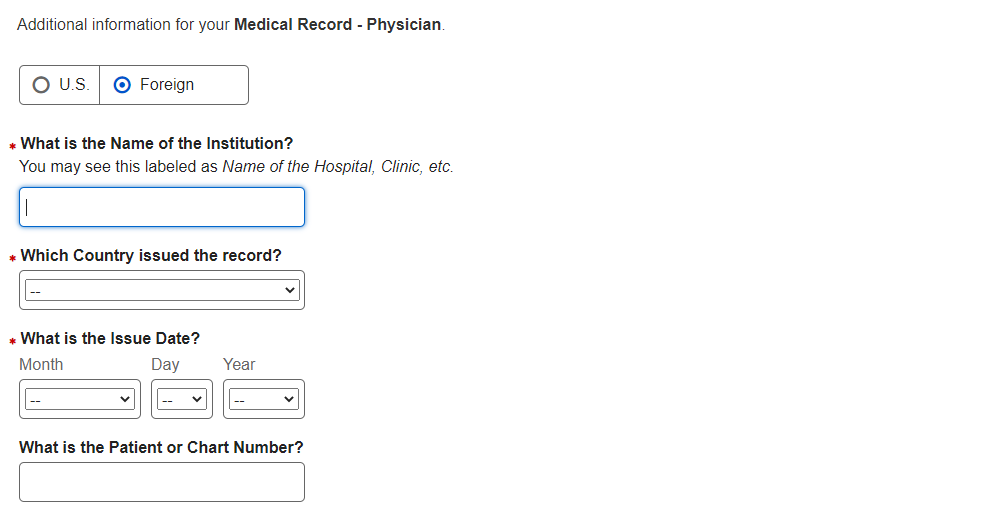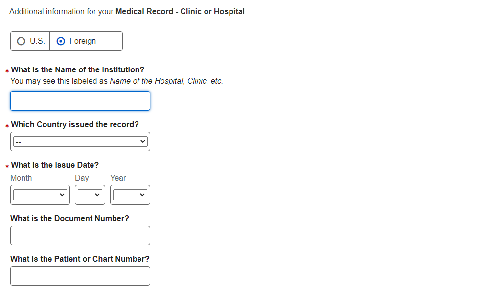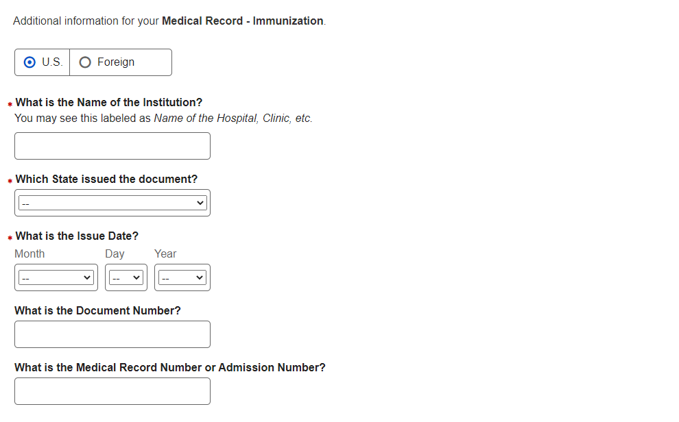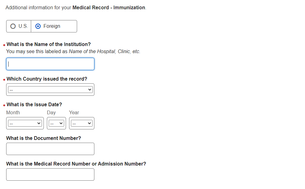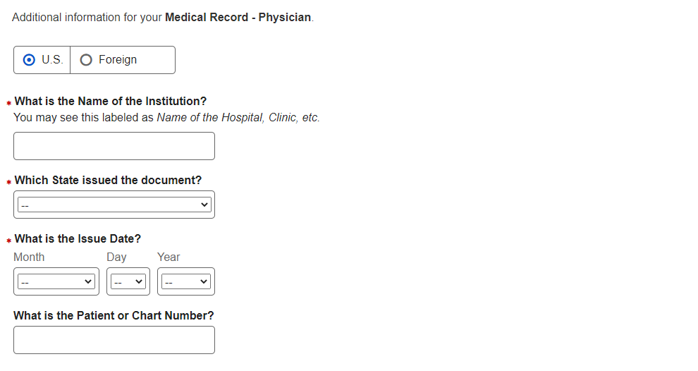 * In the Name Change Documentation for You field in the screenshot below, Marriage document/U.S. only dynamic fields are the same in all paths and will not be shown in future paths.