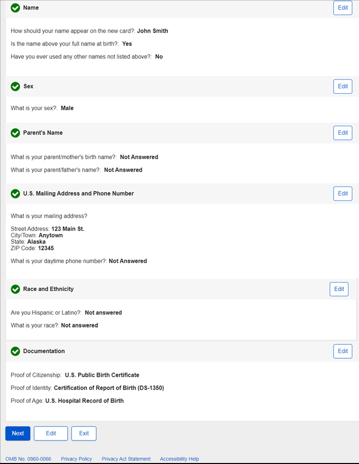 202. Non-U.S. Replacement Someone Else Adult - Review and Edit 304