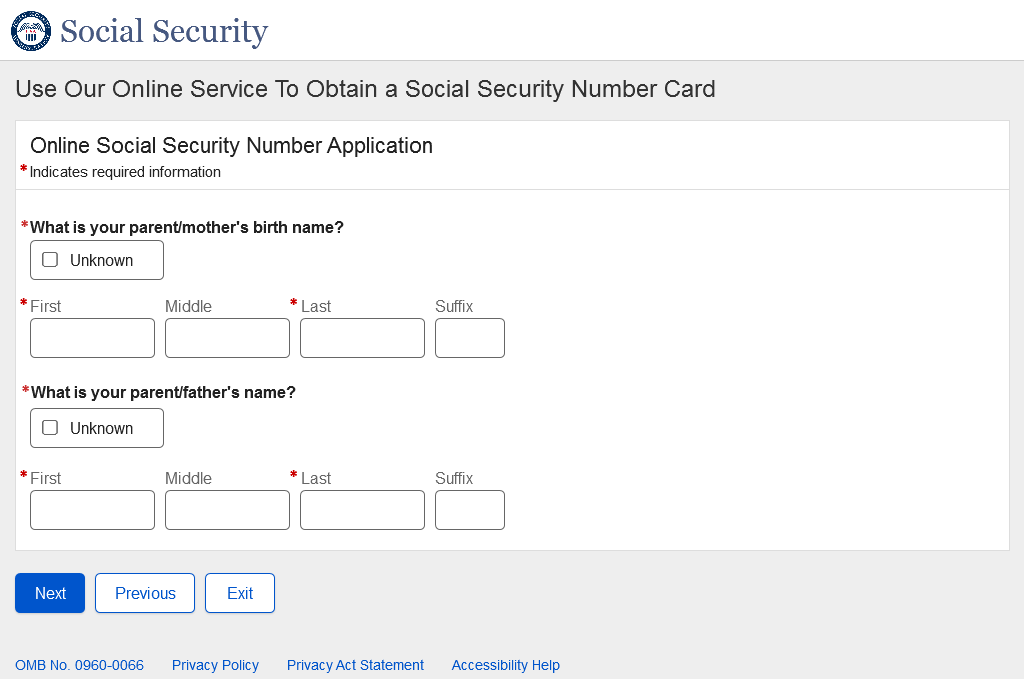 198. Non-U.S. Replacement Someone Else Adult - Individual's Parents Names 296