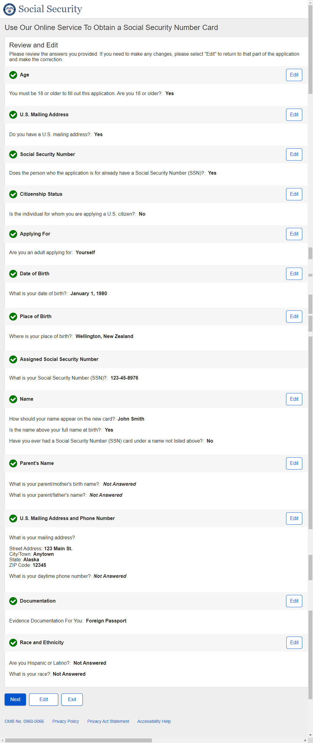 169. Non-U.S. Replacement Self - Have an SSN 264